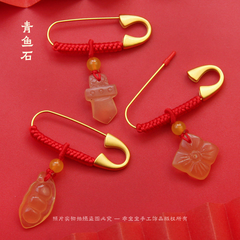 📚 天然青鱼石吊坠婴儿童孕妇压惊别针鱼惊石喉骨宝宝安睡防惊吓挂件