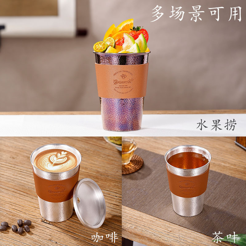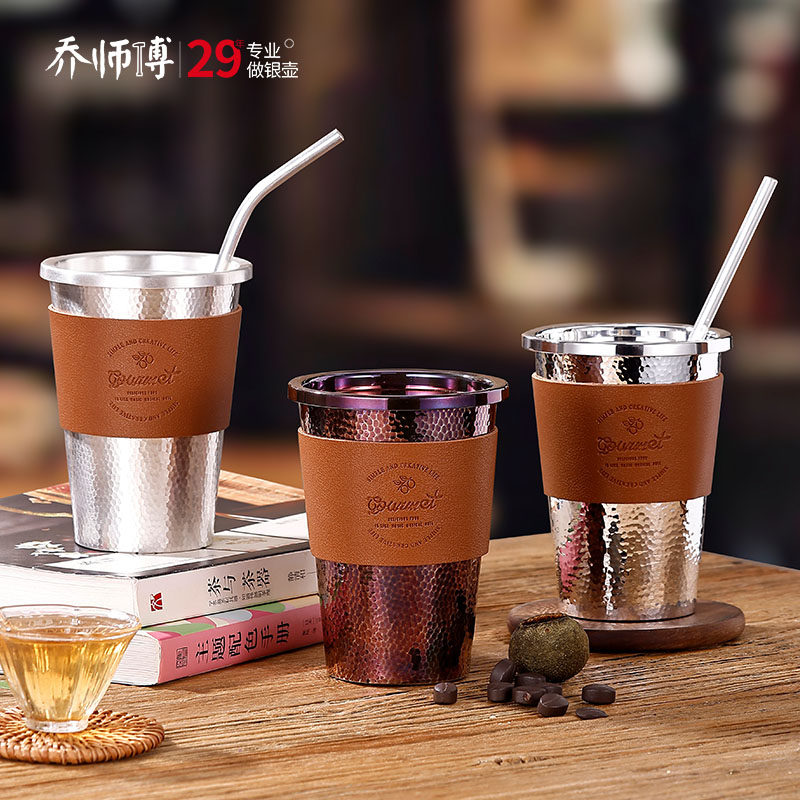 📚 咖啡银杯999纯银茶杯可乐水杯大容量主人杯马克杯户外随身吸管杯