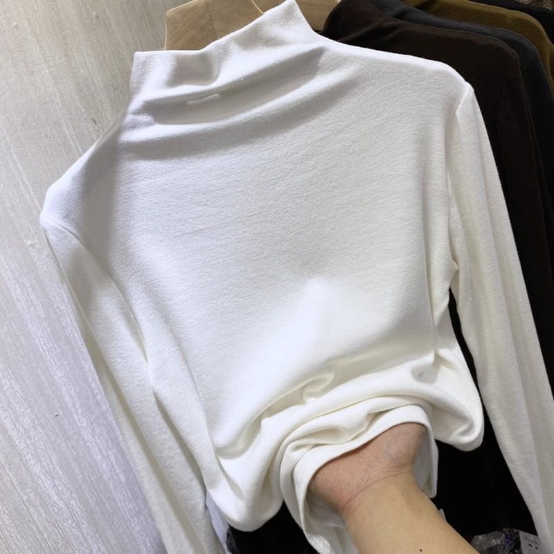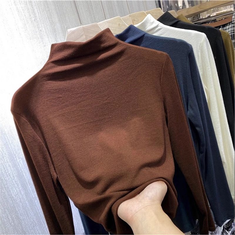 📚 大码300斤半高领打底衫男女2024秋冬新款弹力修身长袖T恤内搭上衣