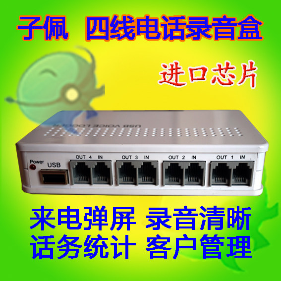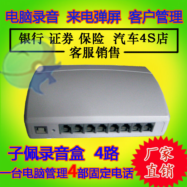 📚 子佩4线录音盒USB|电话录音盒四路电脑录音弹屏话务统计 二次开发