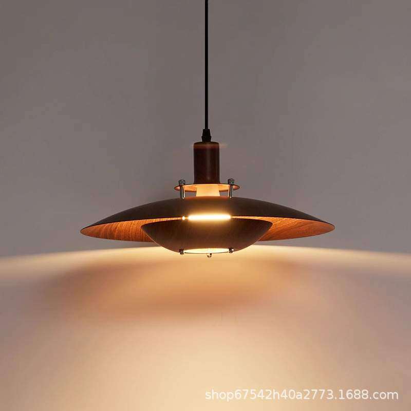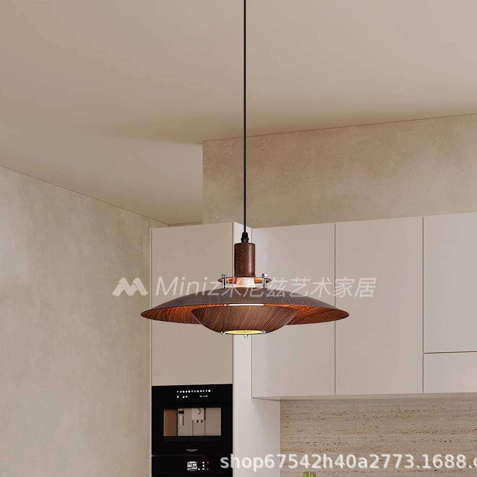 📚 中古侘寂风餐厅吊灯日式复古胡桃木纹餐桌饭厅吧台灯全光谱护眼灯