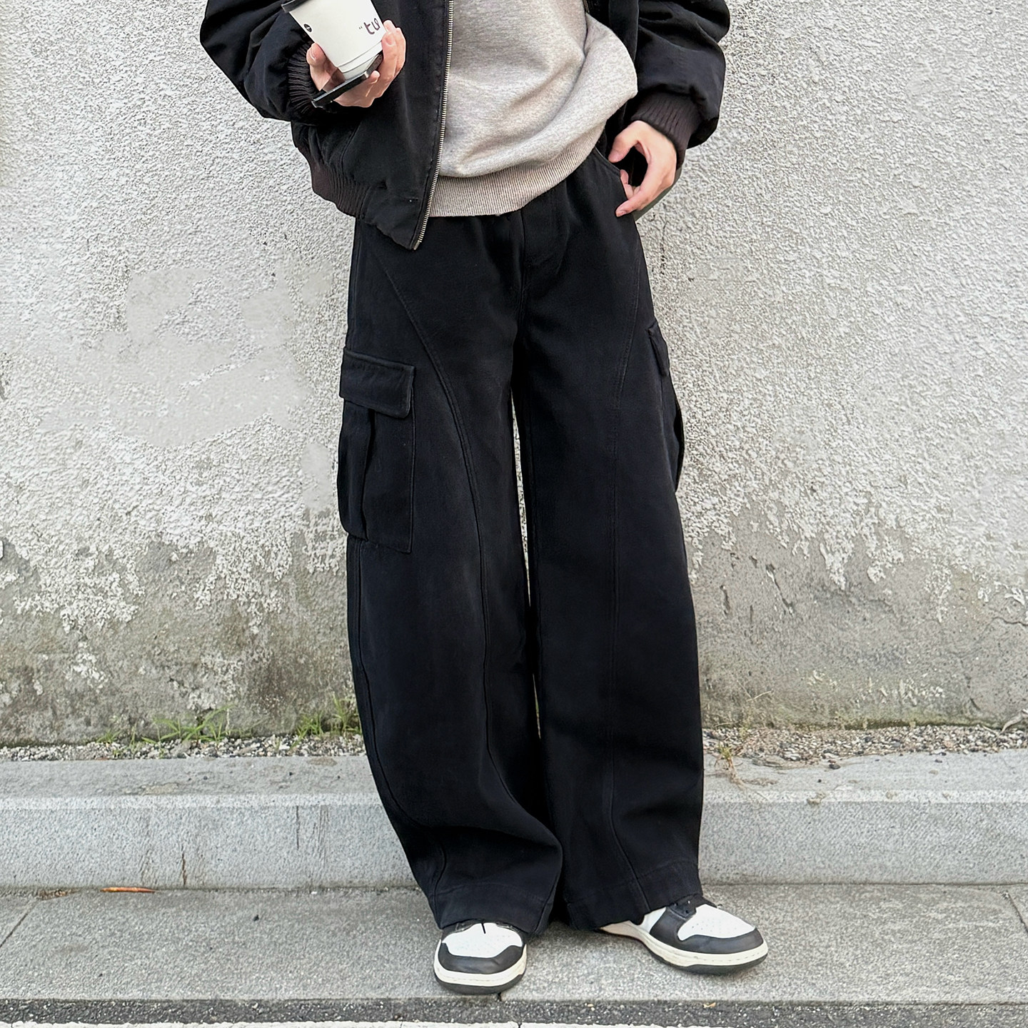 📚 黑色美式复古弯刀加绒工装裤男生2026新款冬季宽松加厚休闲裤子男