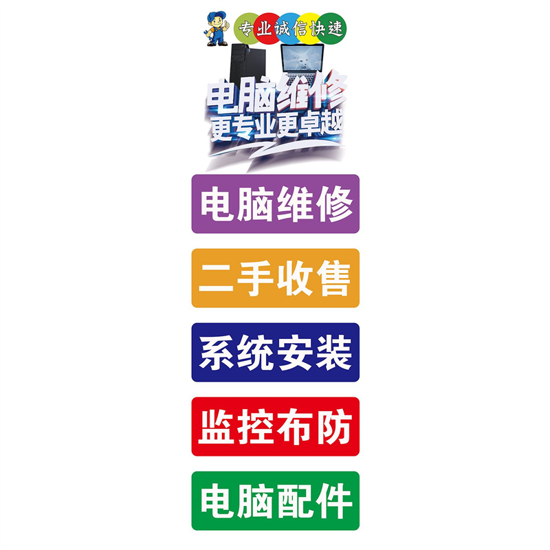 📚 电脑专业维修组装系统安装配件宣传海报销售门店商铺柜台广告贴纸