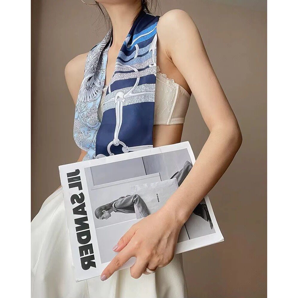 📚 Luxury Long Silk Scarf Female Animal Horse Print Thin Narrow