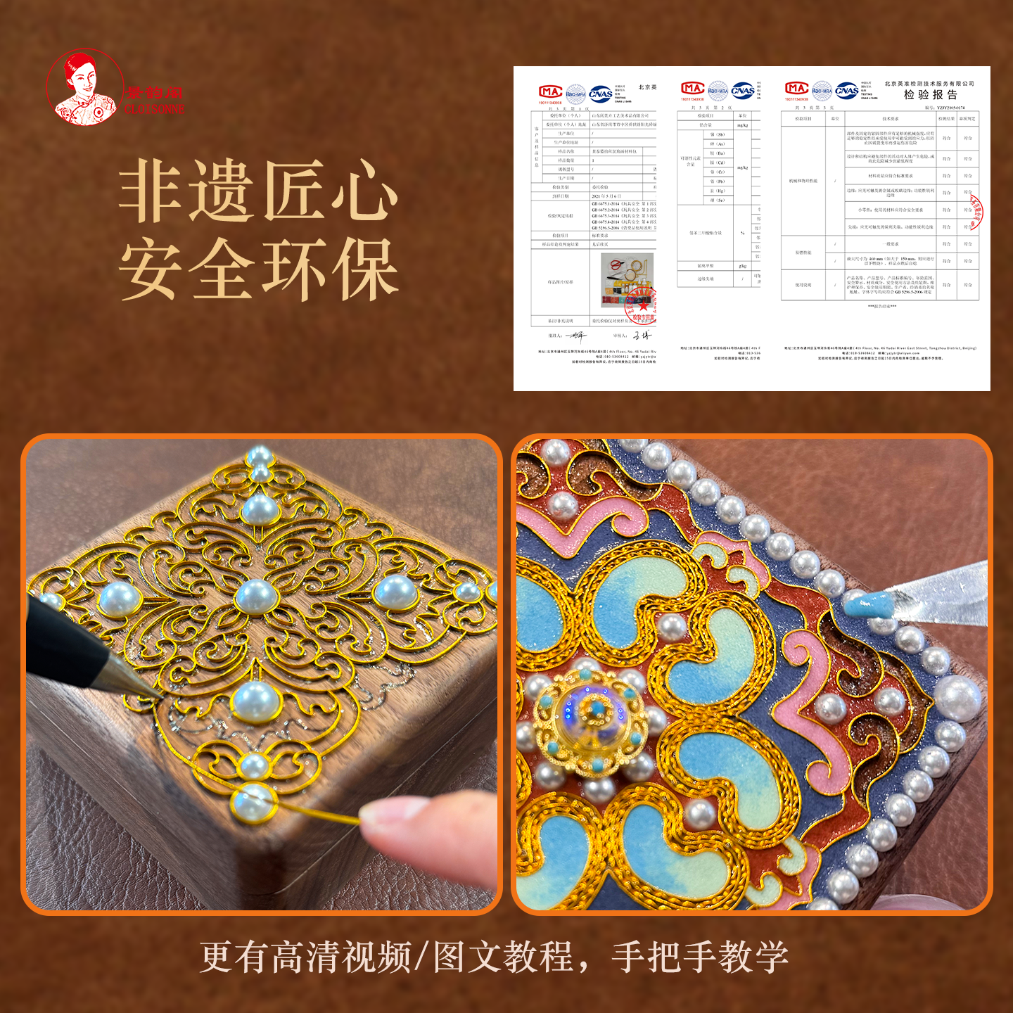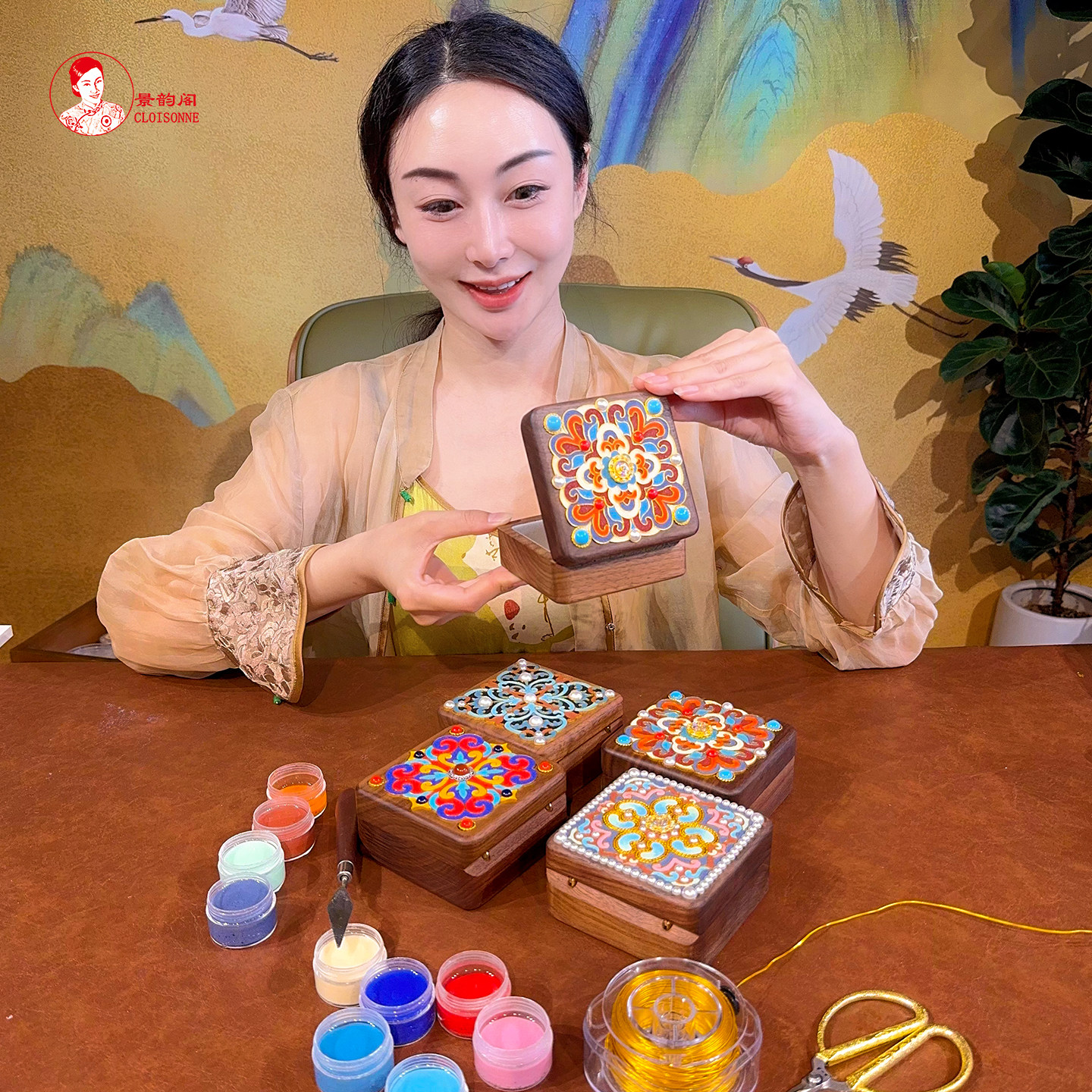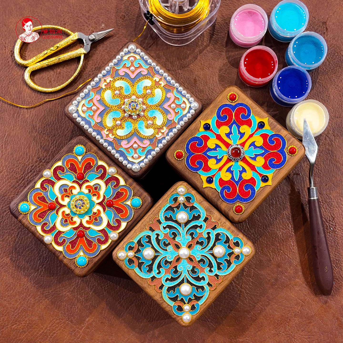 📚 高端国风首饰盒胡桃木宝石釉料景韵阁掐丝珐琅diy材料包 闺蜜礼物