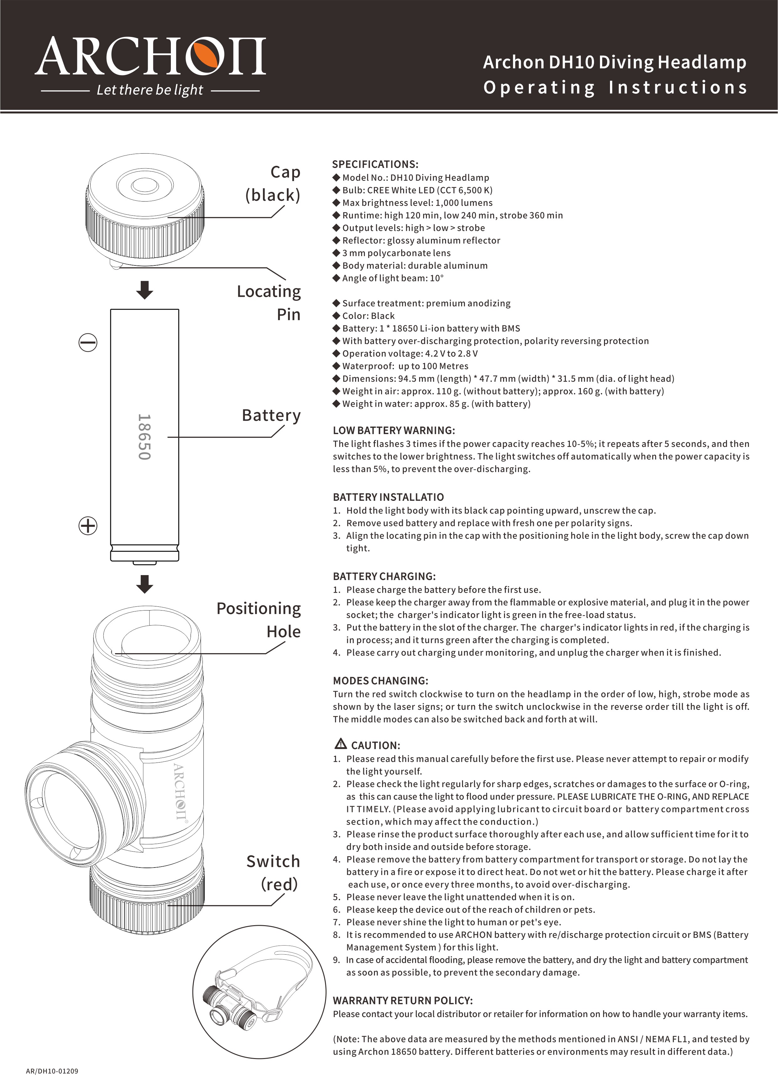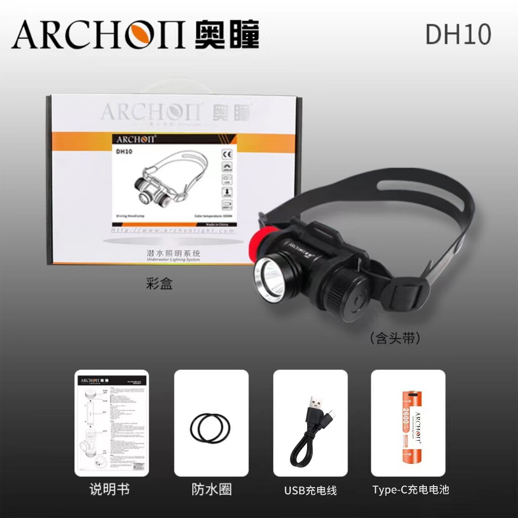 📚 ARCHON奥瞳DH10潜水头灯 1000流明 一体式潜水头灯 LED轻便头灯