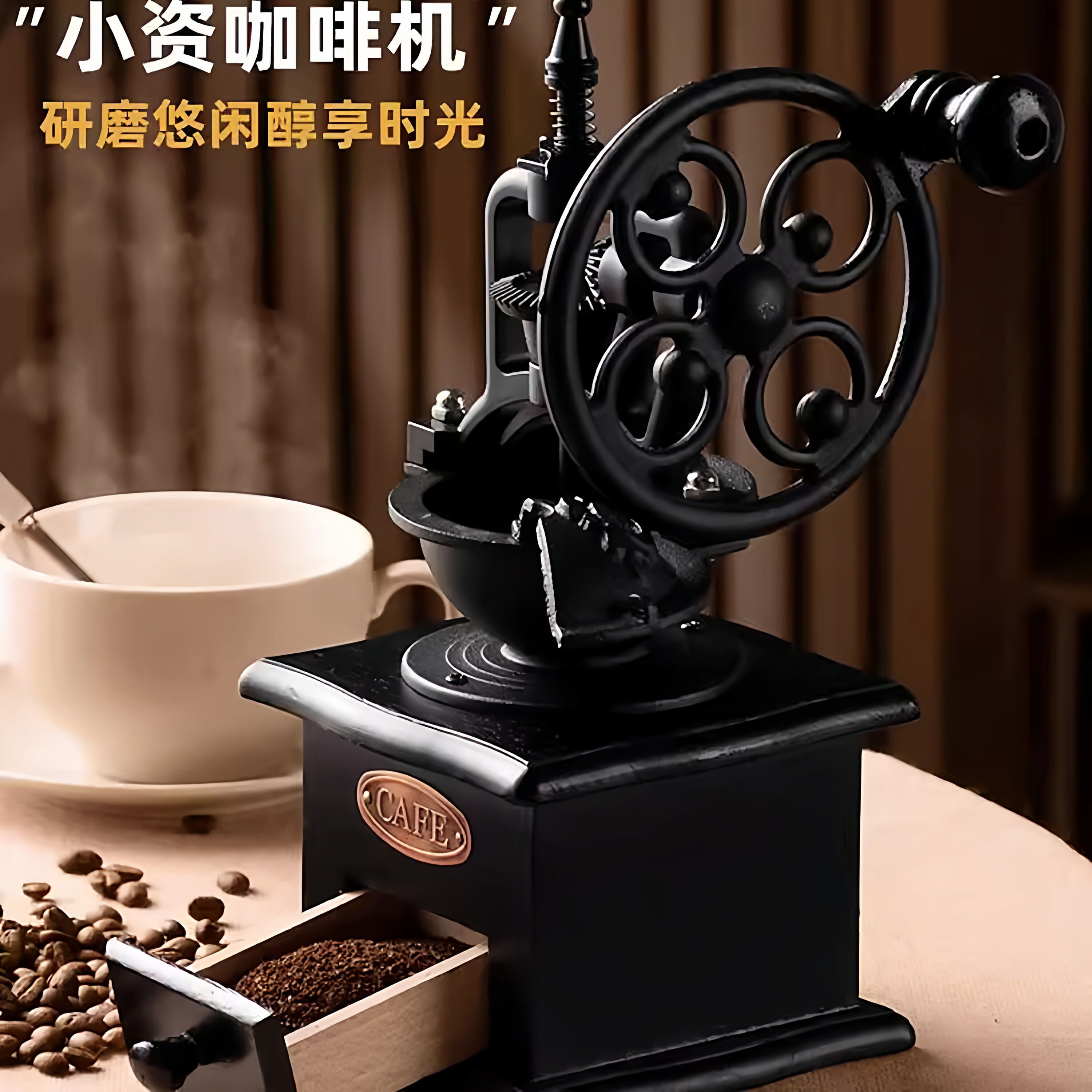 📚 德国2025新款手磨咖啡机家用复古咖啡豆研磨机手摇磨豆机磨粉机器