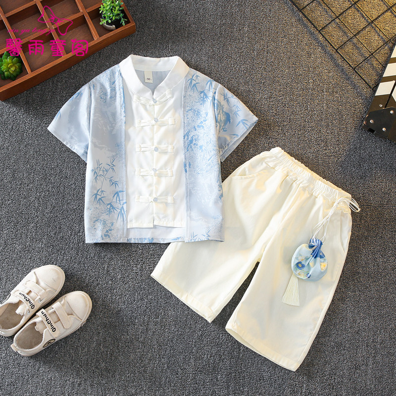 📚 新中式男童汉服夏装2025新款儿童中国风唐装女童古装幼儿园演出服