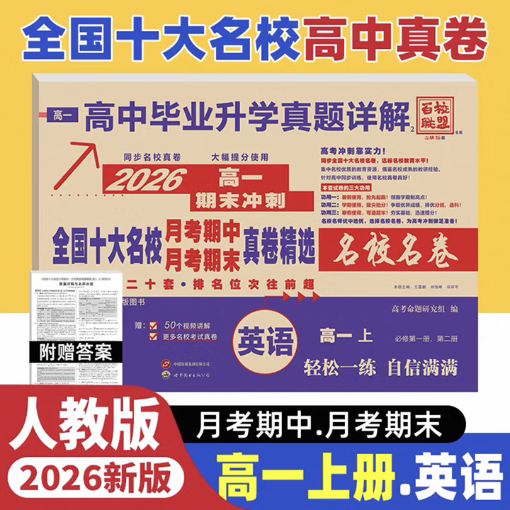 📚 2026高中十大名校月考期中期末冲刺真卷语文数学英语物理化学生物高一高二上人教外研百校联盟四川重庆上海贵州湖南北北京天津云南