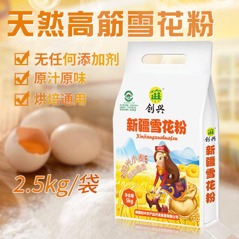 📚 新疆创兴奇台雪花粉5斤 高筋麦芯粉面包馒头面条饺子专用烘焙通用