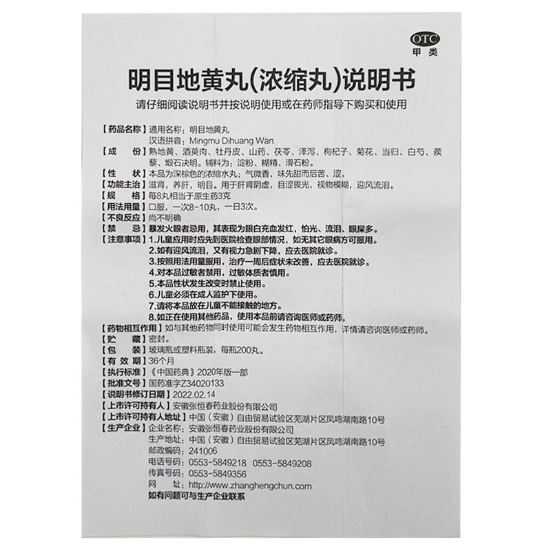 📚 张恒春 明目地黄丸 200丸 肝肾阴虚目涩畏光视物模糊迎风流泪GD