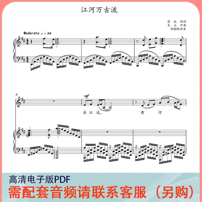 📚 江河万古流 D/E调 声乐正谱五线谱钢琴伴奏谱乐谱