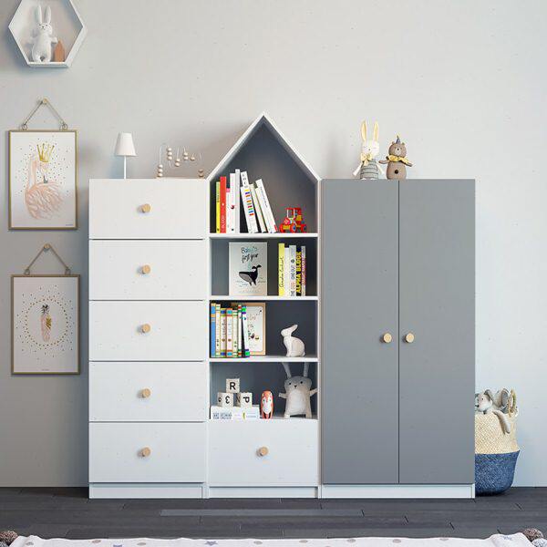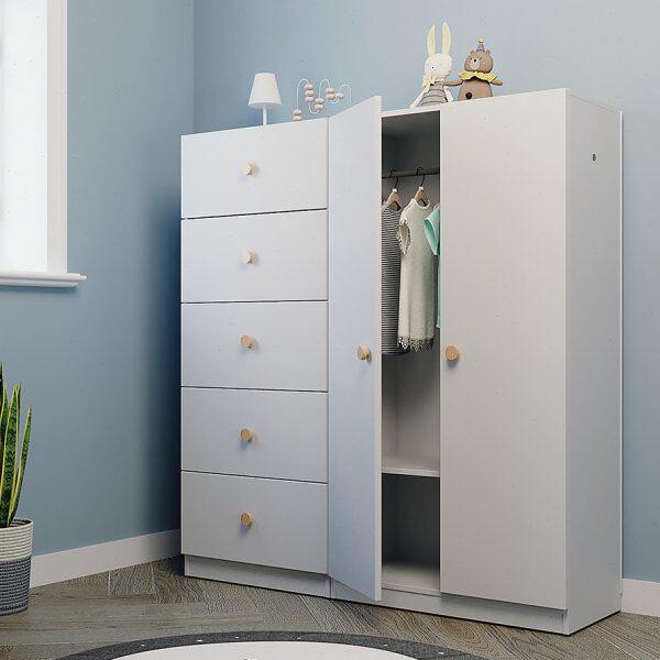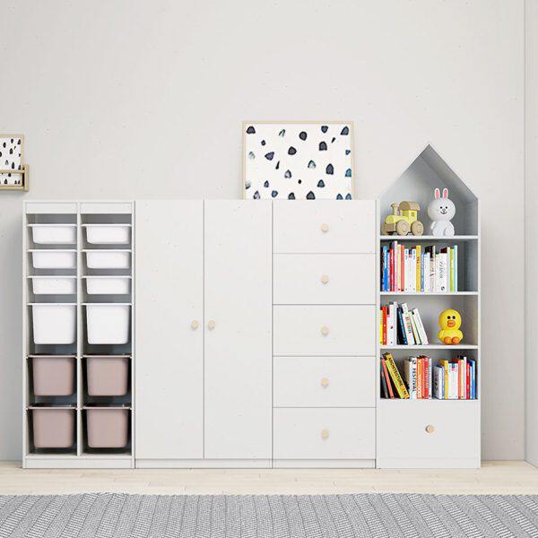 📚 可比熊实木儿童衣柜收纳柜简约现代双开门抽屉式男女孩衣橱柜子
