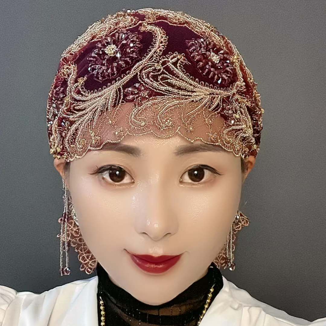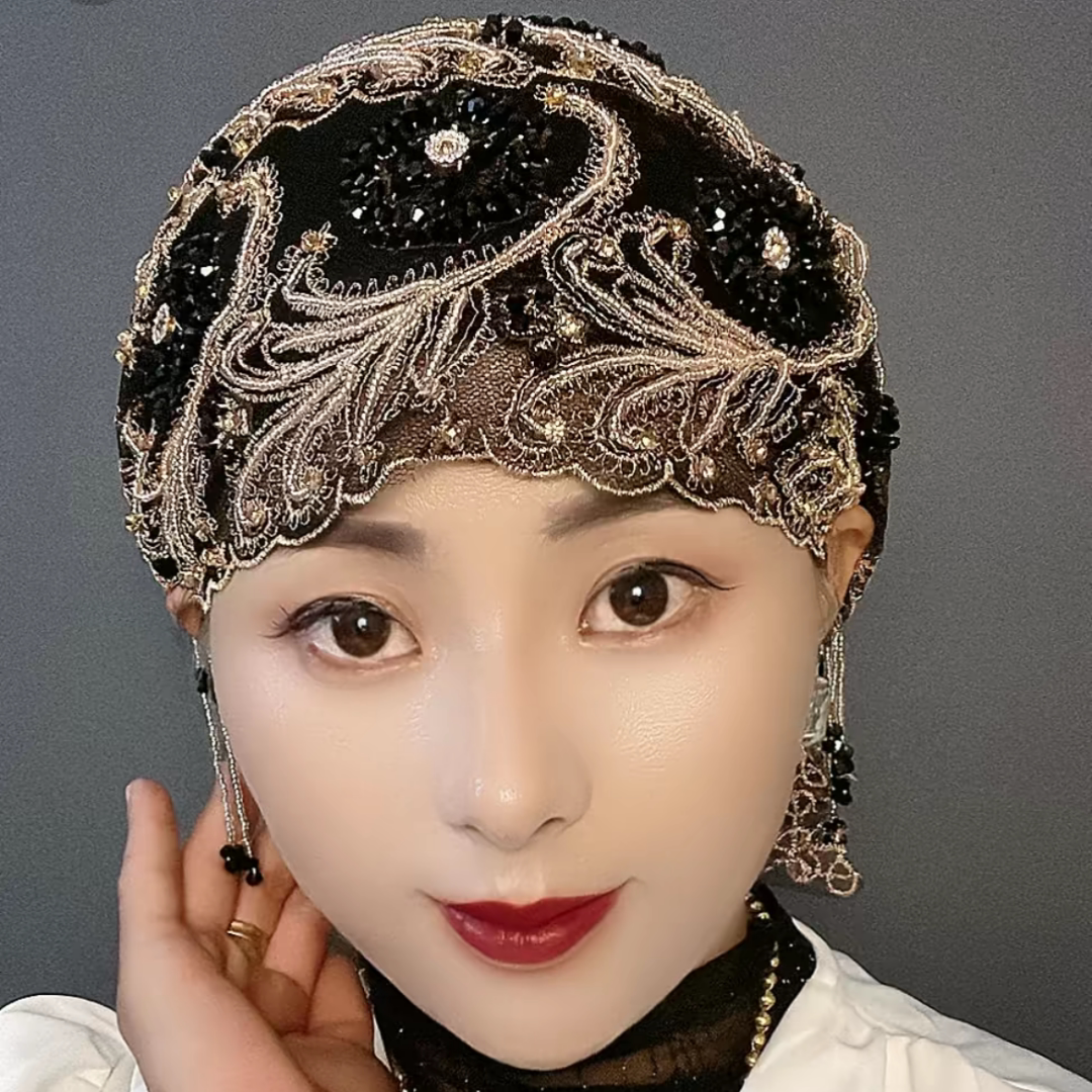 📚 纯手工流苏帽子头巾包头帽鱼尾帽回族盖头时尚纱巾新款高档妈妈帽