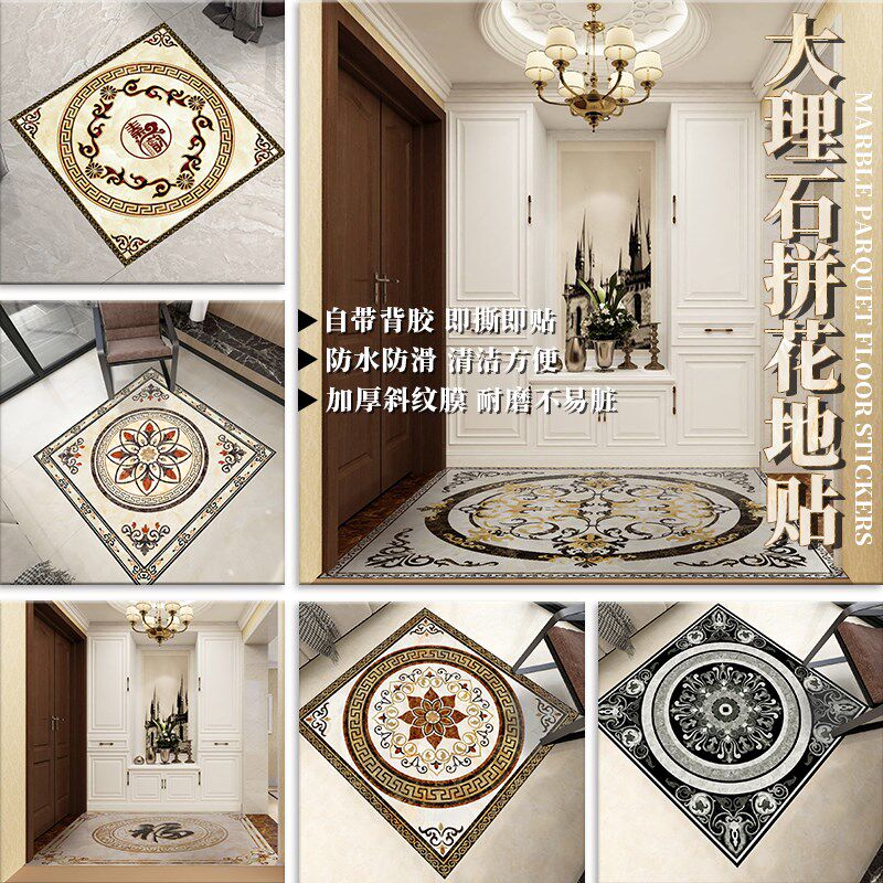 📚 客厅地板遮丑地面方形拼花瓷砖贴纸玄关过道装饰自粘防水耐磨地贴