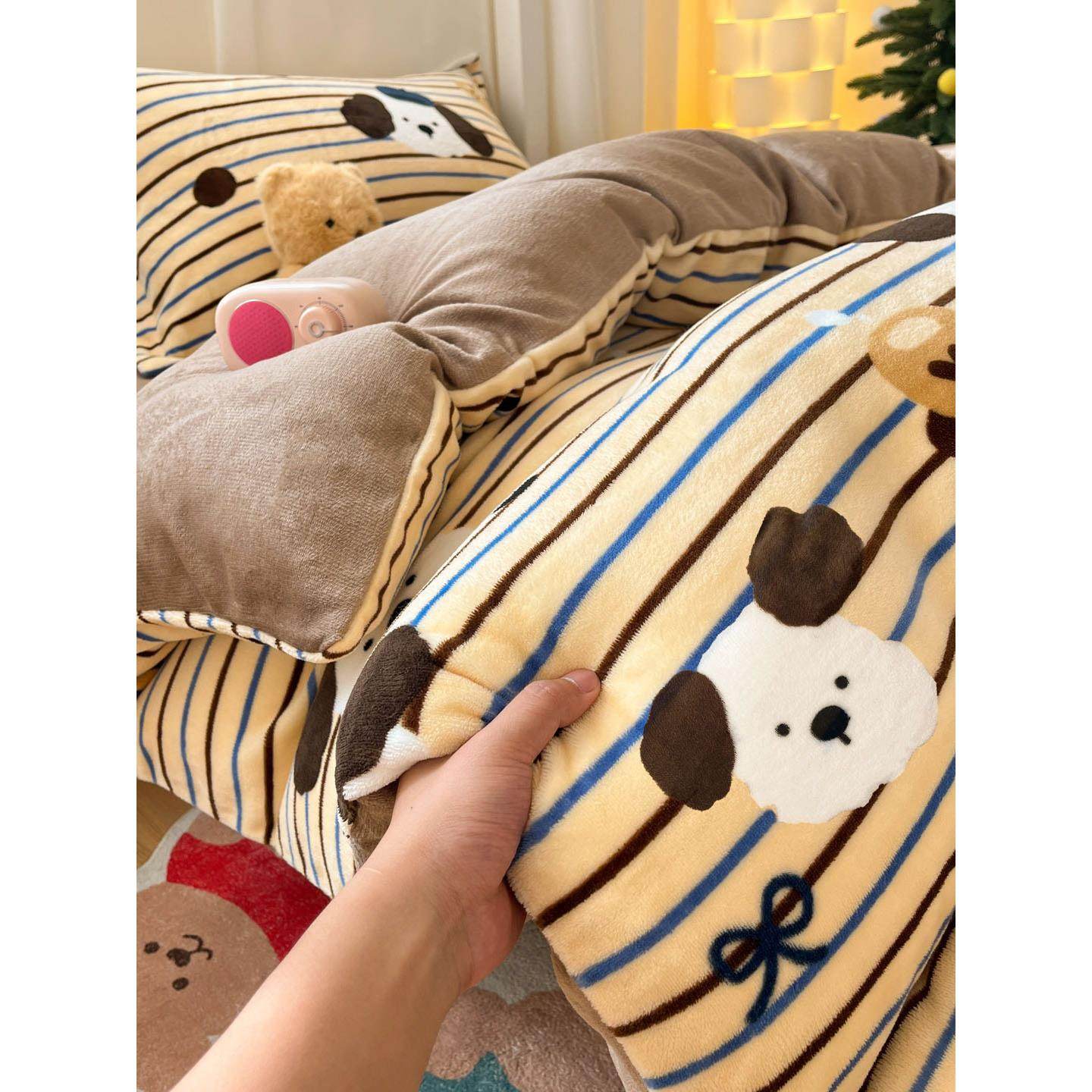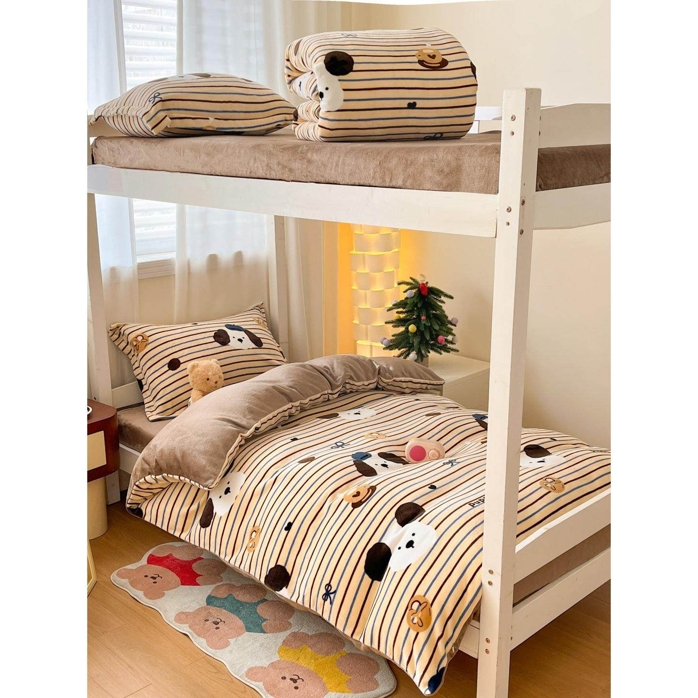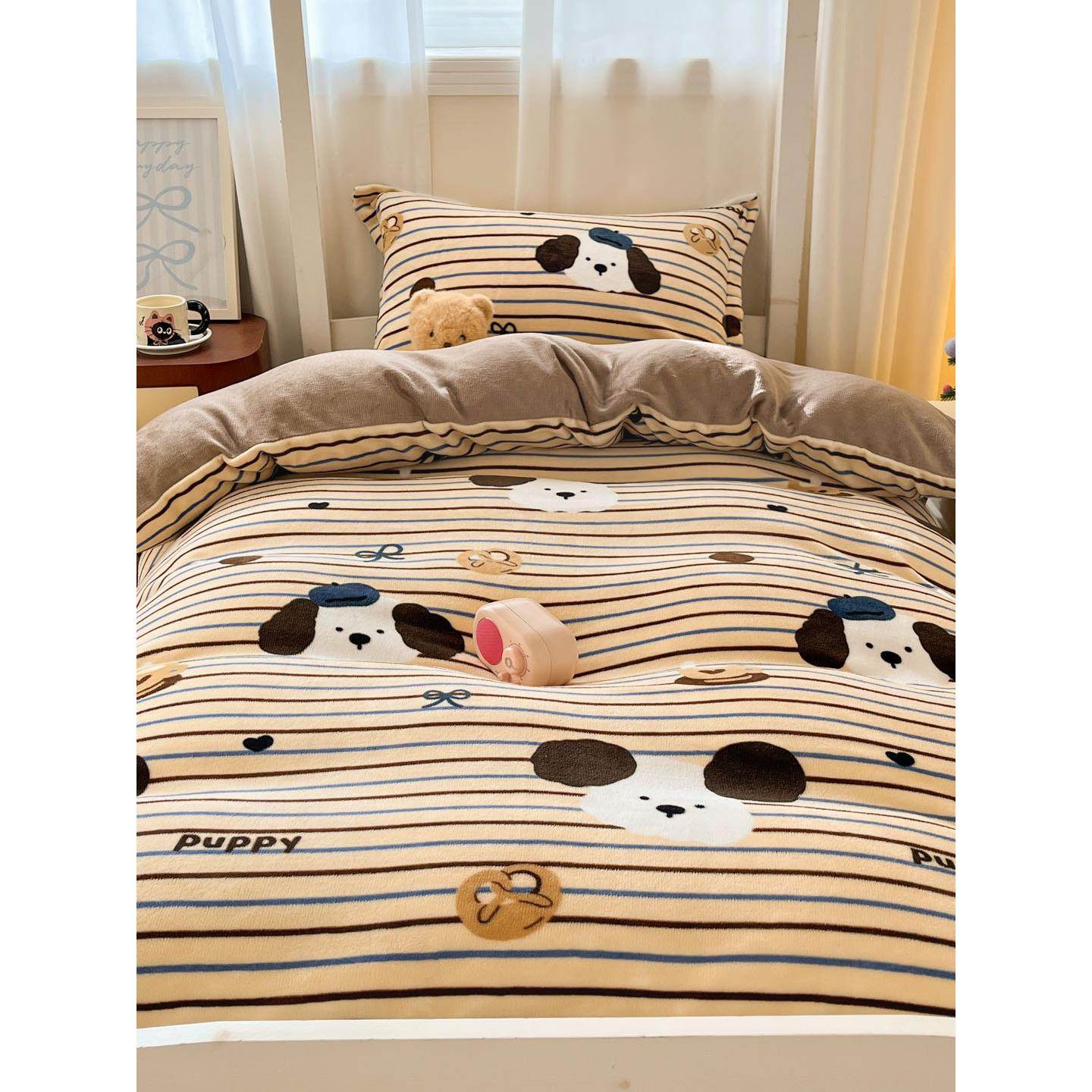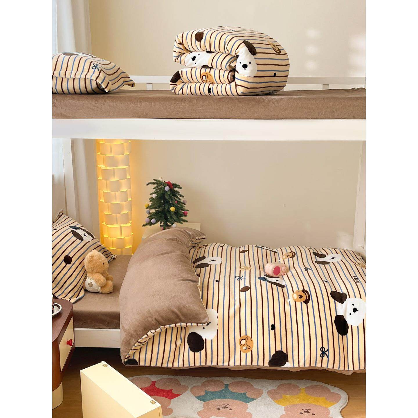📚 秋冬天牛奶绒男童1米35床品床笠款三件套135床上四件套儿童男生