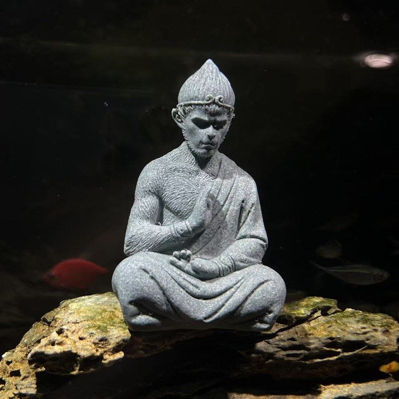 📚 鱼缸造景斗战胜佛青砂石定海神针龙宫摆件孙悟空齐天大圣茶宠