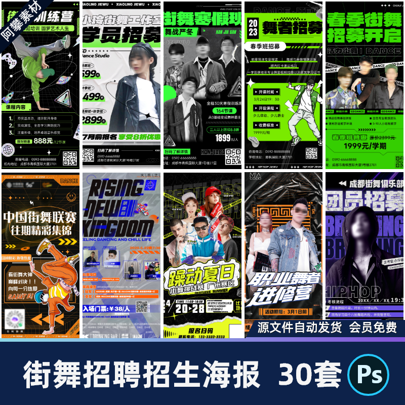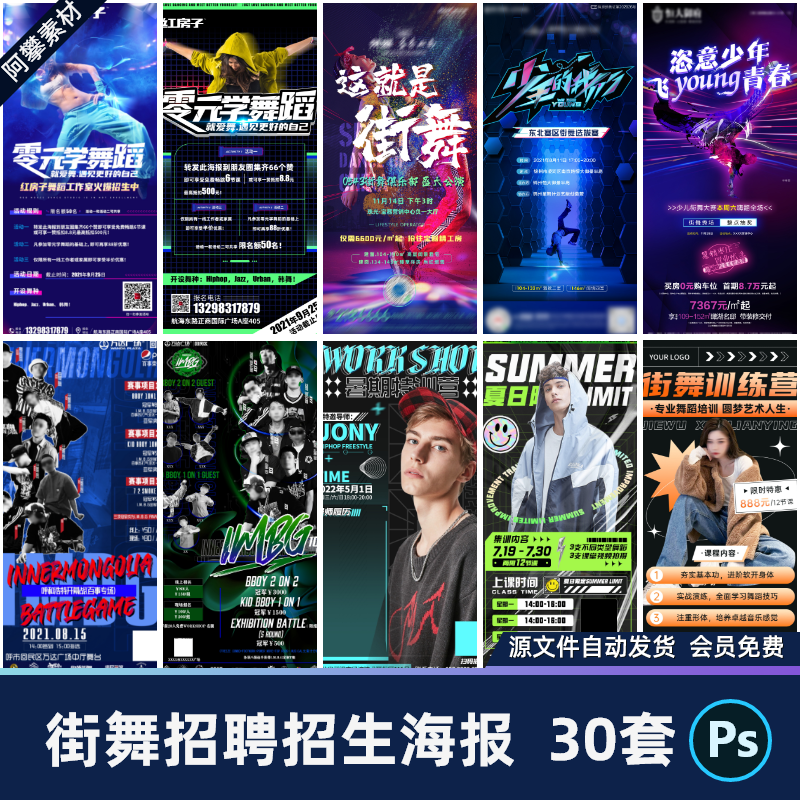 📚 街舞比赛培训兴趣班潮流炫酷招生招聘宣传海报PSD设计素材模版