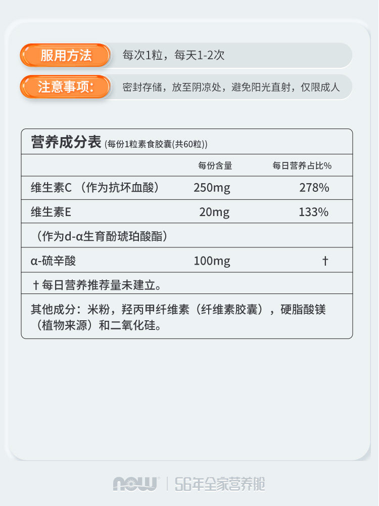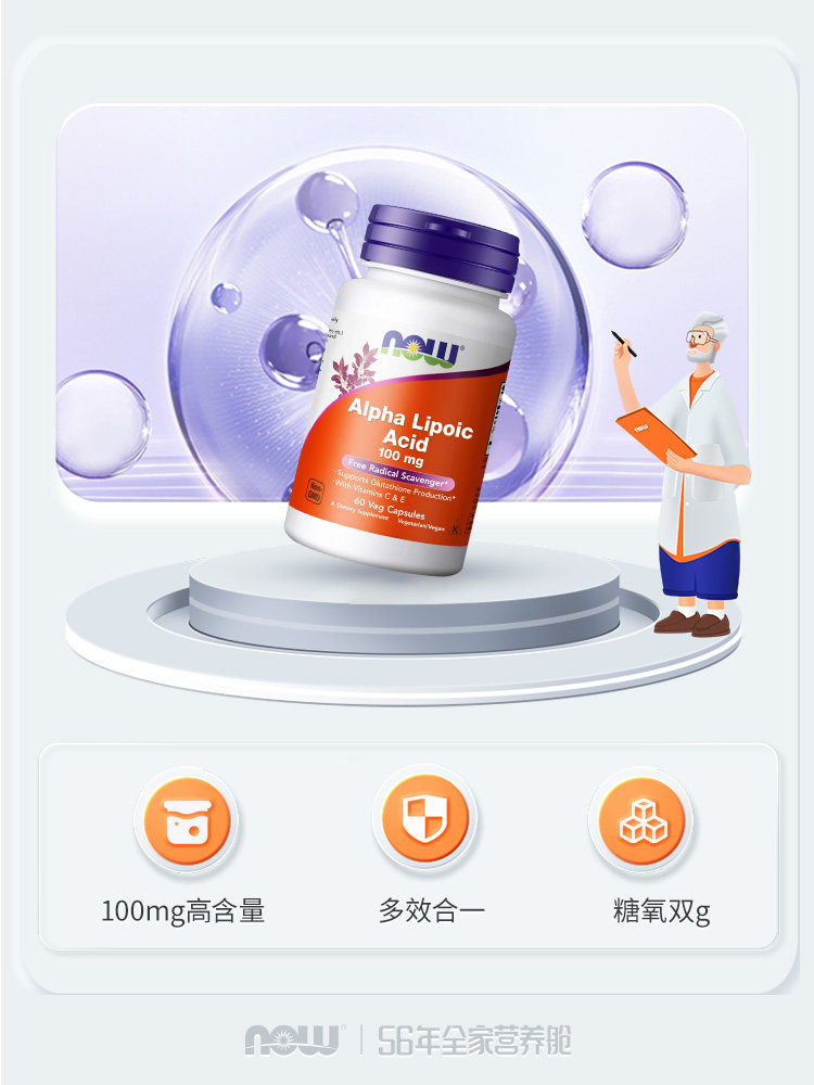 📚 NOWfoods 阿尔法硫辛酸抗糖降氧a营养神经末梢α硫辛酸片天然正品