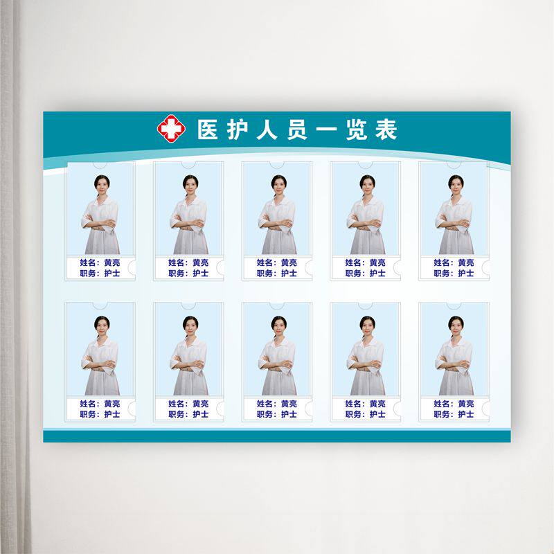 📚 医生简介展示牌医务人员公示栏护士站一览表公示牌工作人员岗位牌