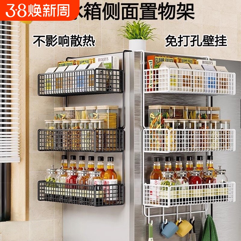 📚 冰箱置物架侧收纳挂架家用多层厨房用品收纳架侧面免打孔壁挂两层