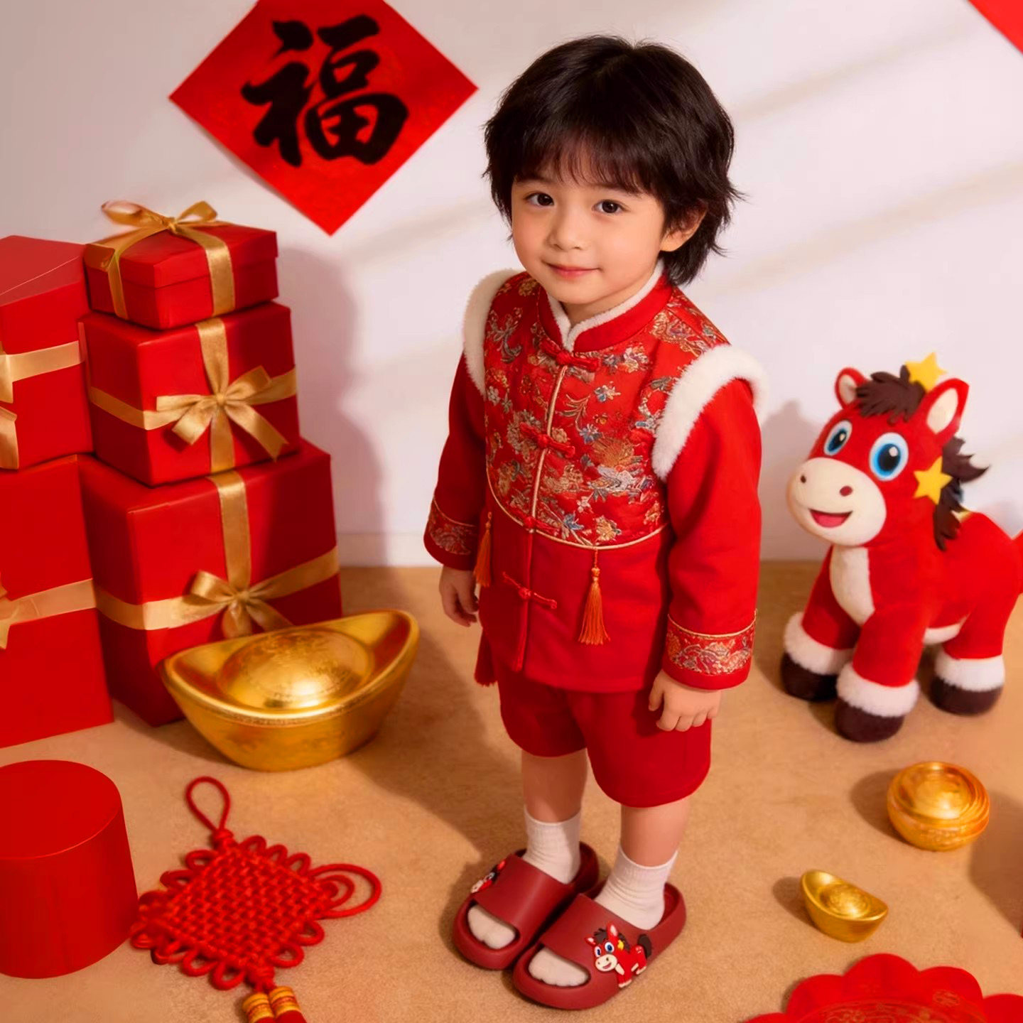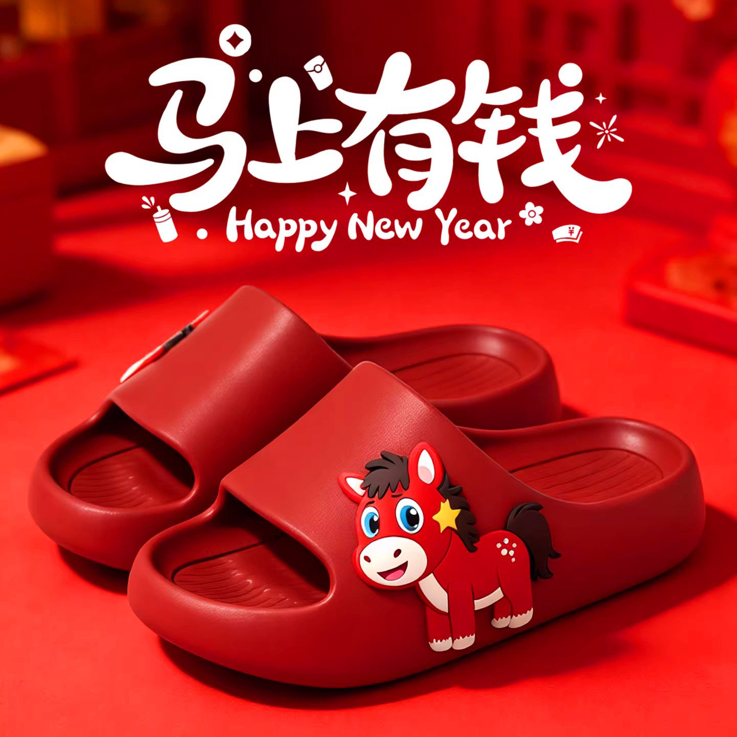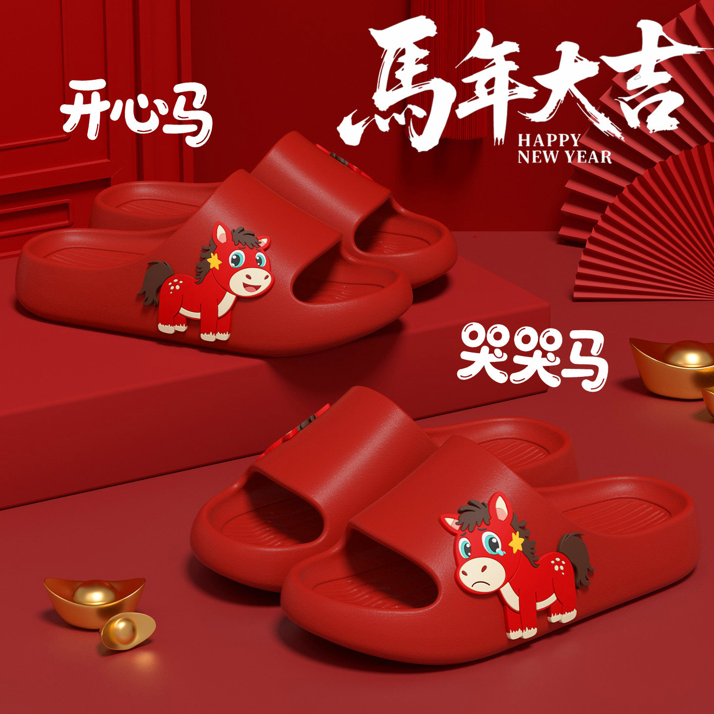 📚 哭哭马本命年拖鞋女款马年2026新款室内居家防滑喜庆大红凉拖男士