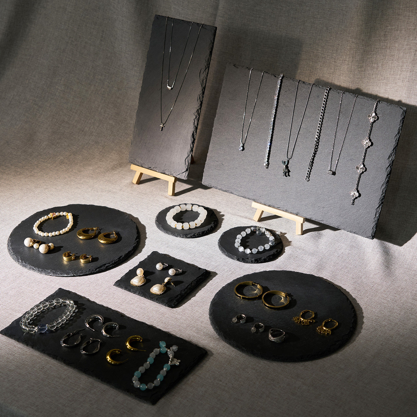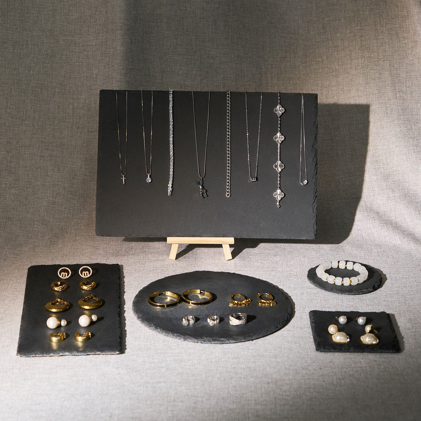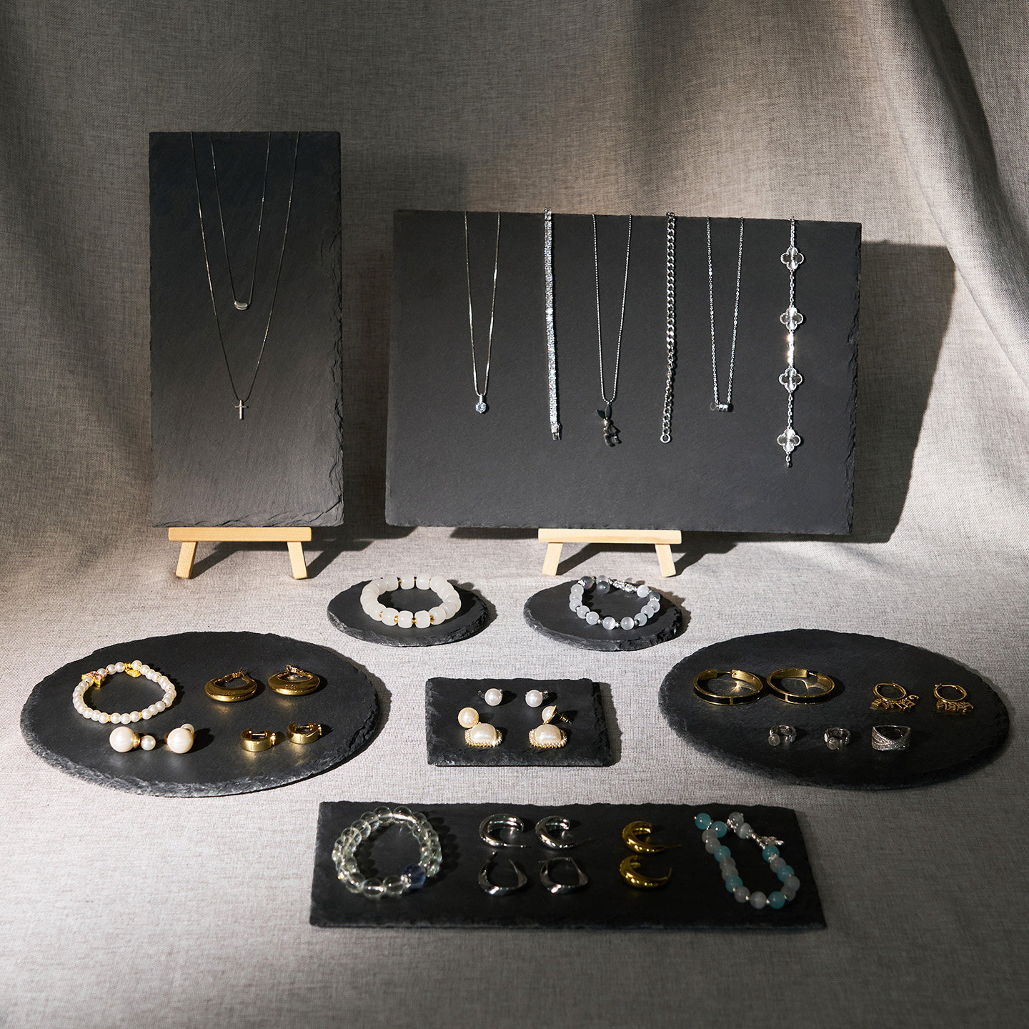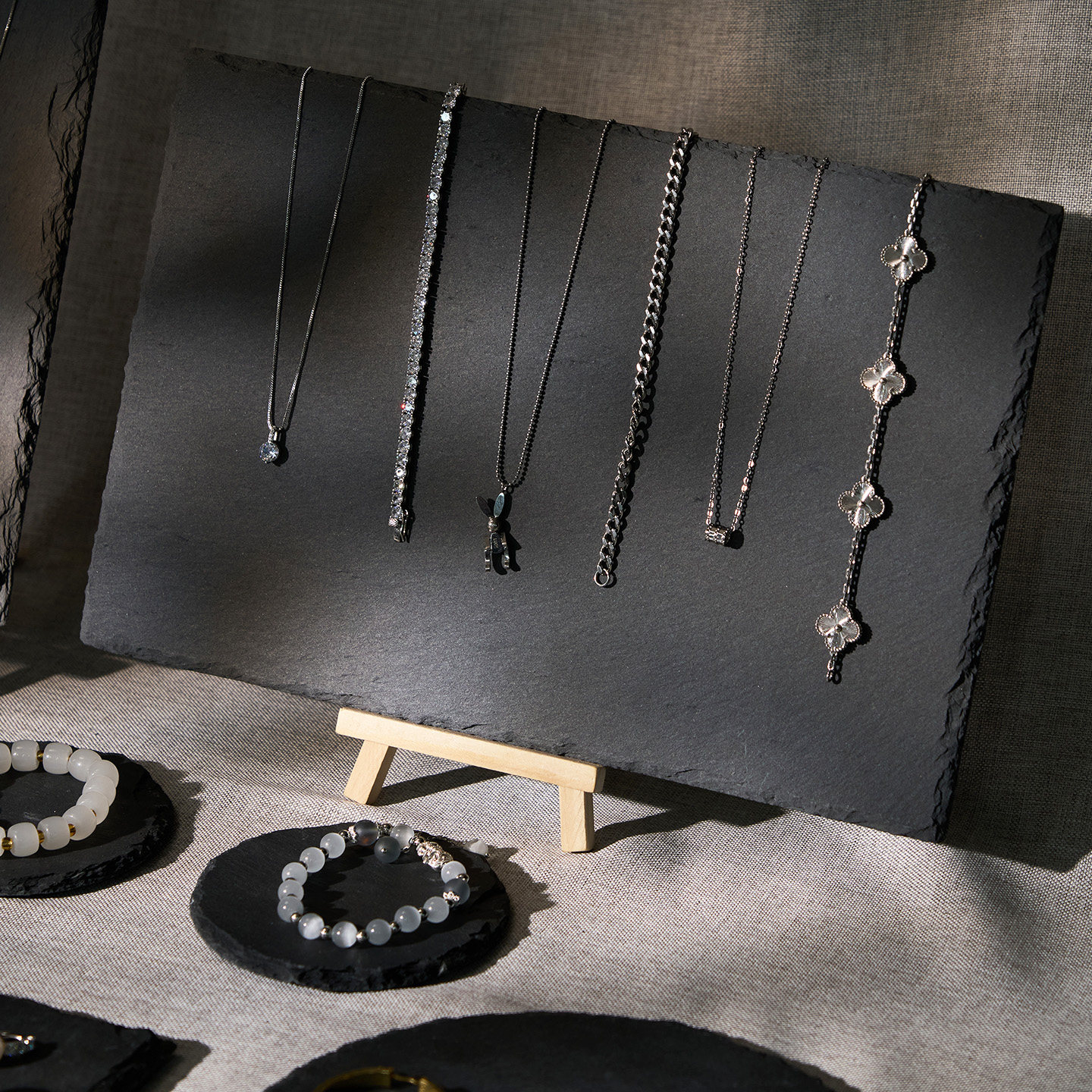 📚 高级感首饰展示架黑色项链摆放石板珠宝手串托盘陈列饰品拍照道具