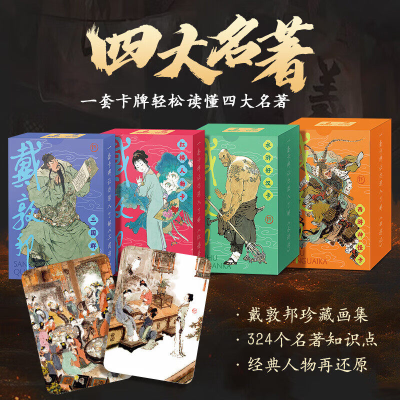 📚 戴敦邦四大名著人物卡 水浒传历史知识卡 红楼梦益智游戏卡盒扑克套装卡牌卡片西游记知识集卡小学生版儿童卡名家绘画课外阅读书籍