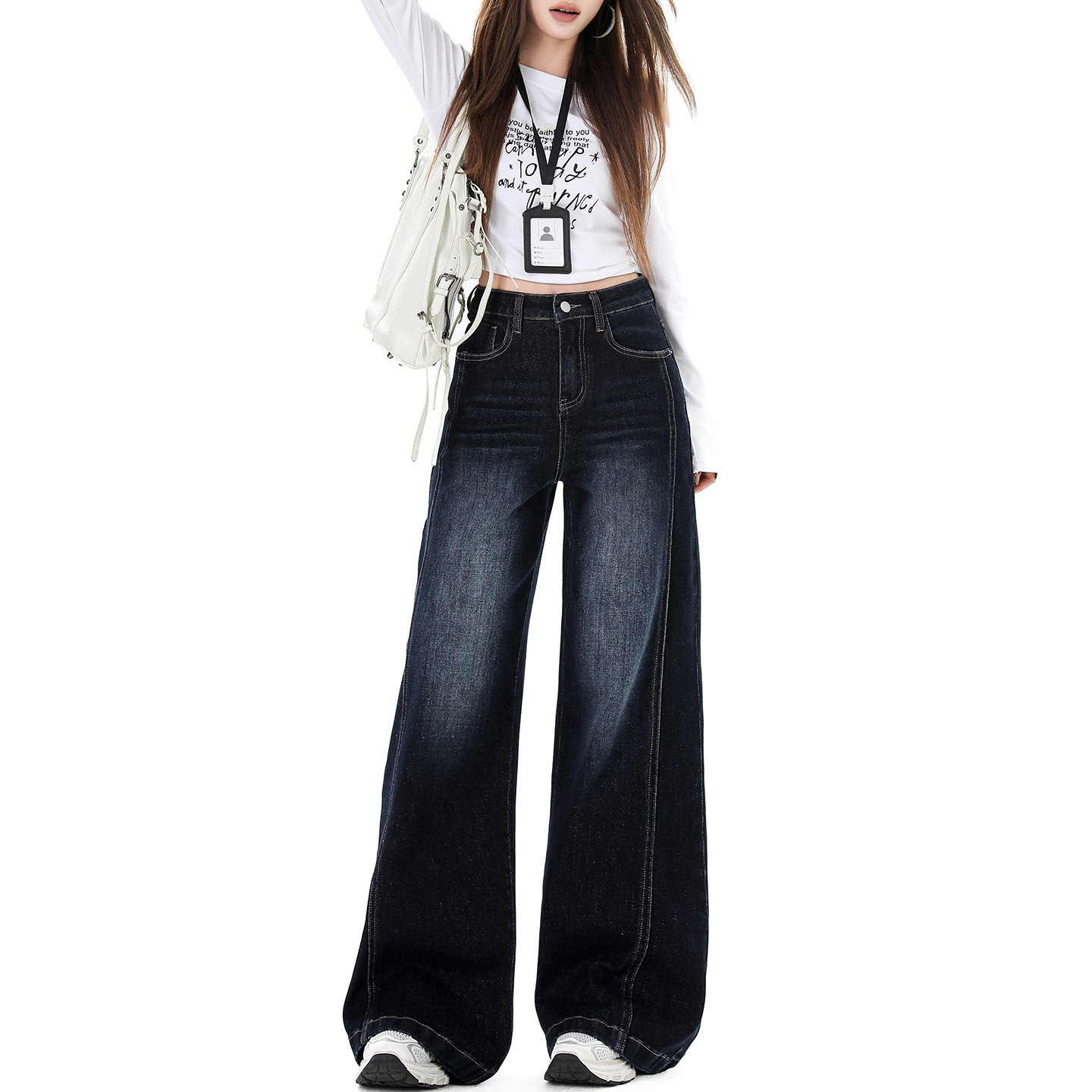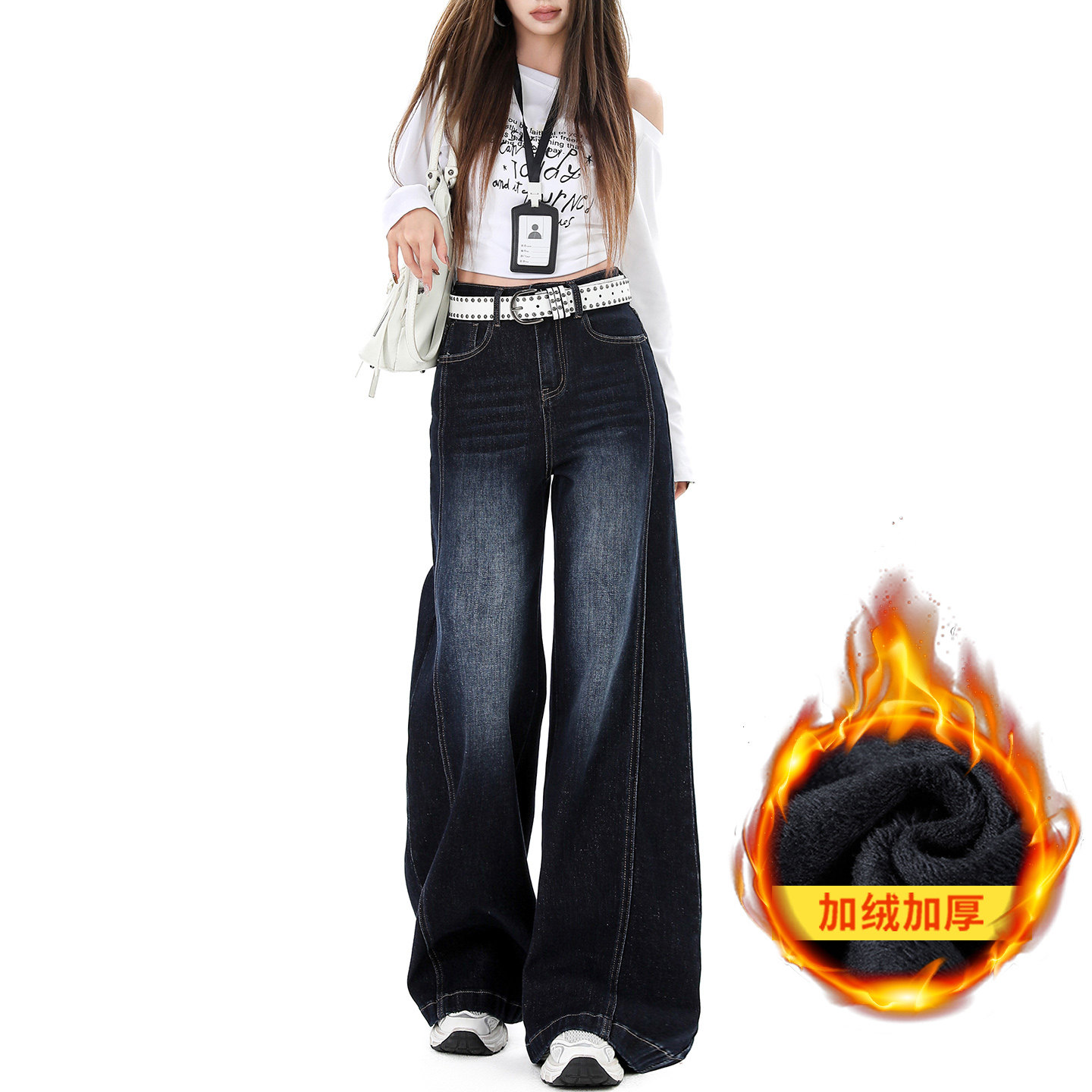 📚 美式复古加绒阔腿牛仔裤女2025新款冬季高腰宽松显瘦慵懒风拖地裤