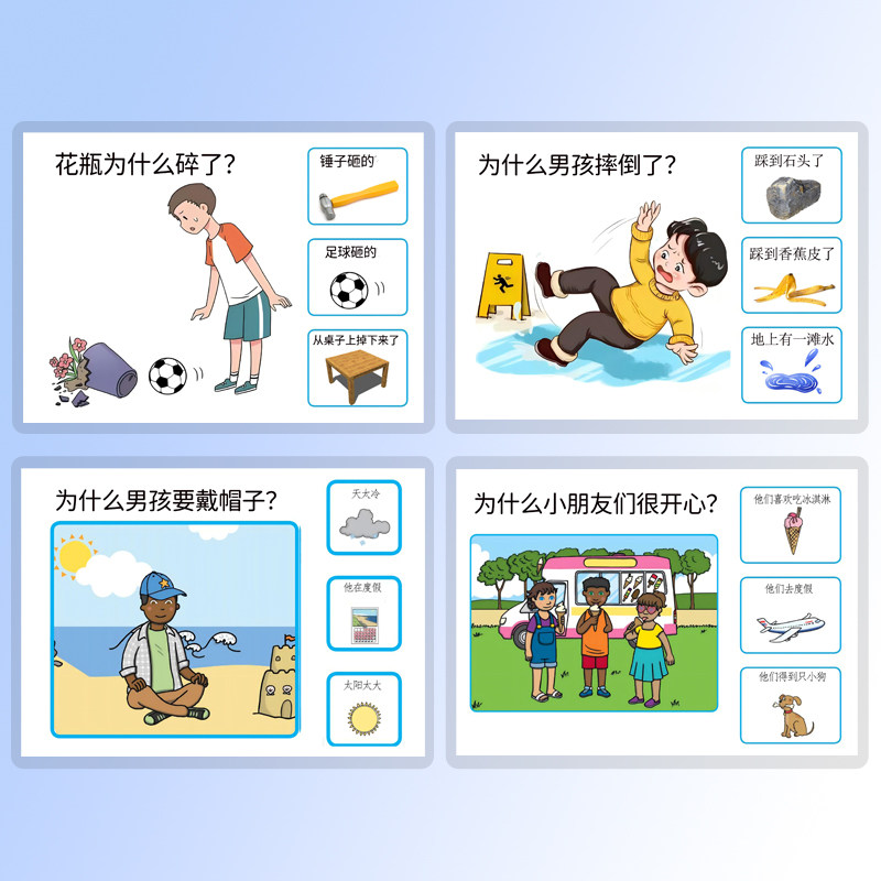 💖首先,这款卡片不仅仅是一款教具,更是一份情感寄托和认知启蒙的工具。它帮助我们理解和探索情绪、心智、因果关系等概念,对于自闭症儿童来说,这是一份宝贵的知识储备。通过卡片上的互动游戏,孩子们可以更好地理解自己的情绪和行为,提高他们的认知能力。