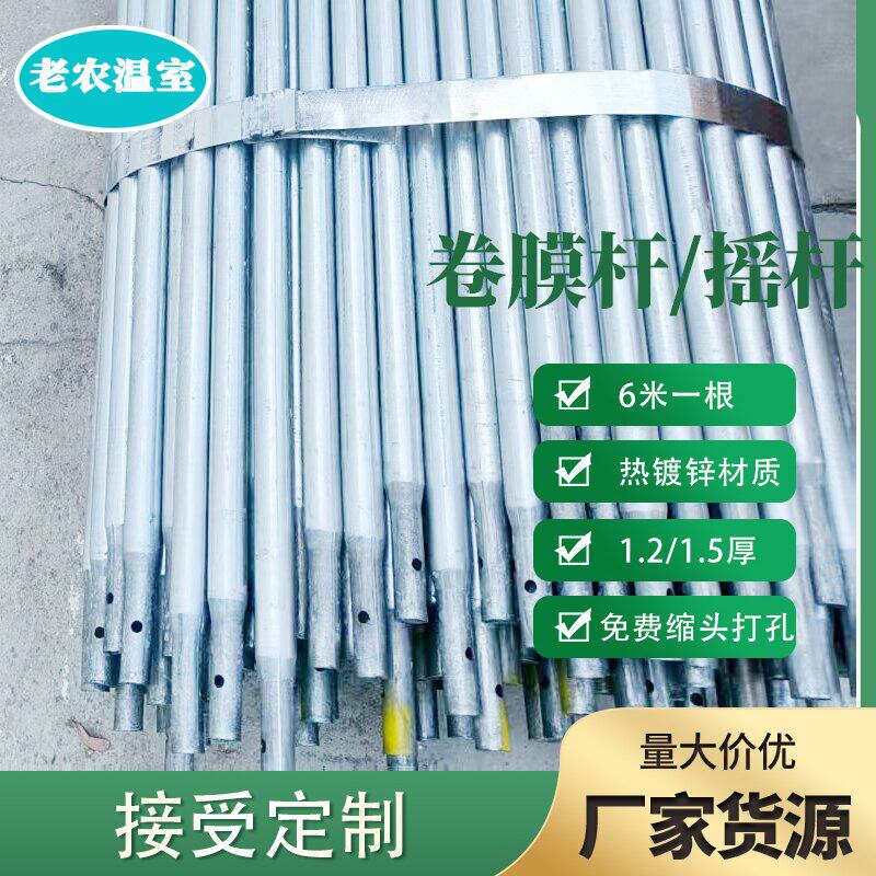 📚 温室大棚配件25管6分4分钢管卷膜杆热镀锌摇膜杆拉杆缩头管拍扁