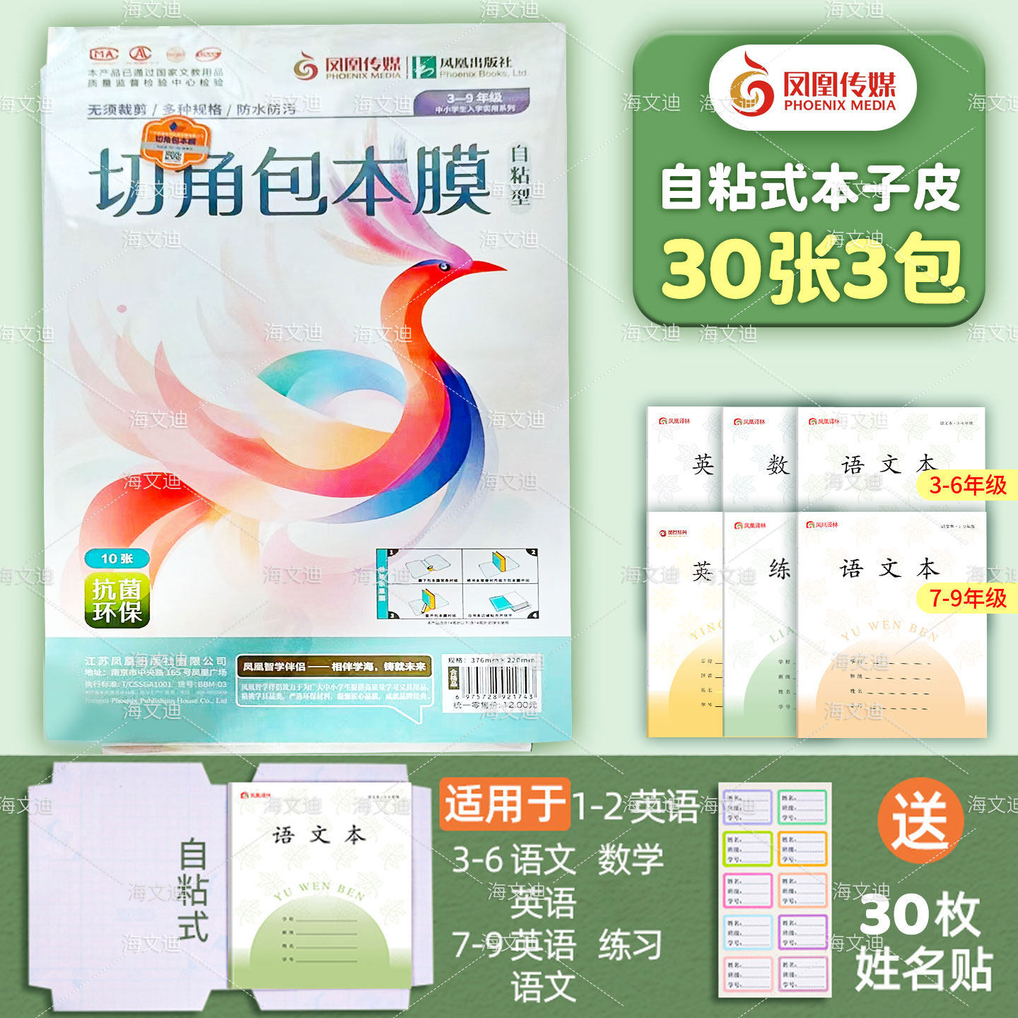 📚 江苏配套凤凰传媒本子皮自粘作业本皮1-2年级透明磨砂包书膜书皮中小学生小书皮练习册保护套3-6年级防水书套