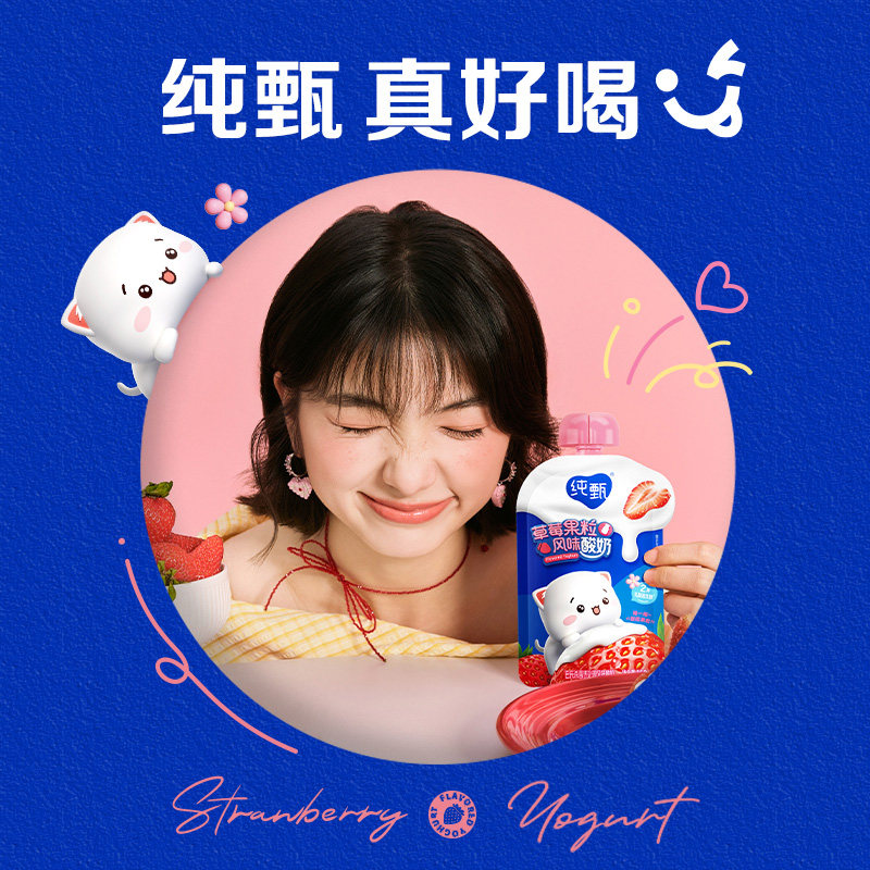📚 纯甄草莓果粒风味酸奶自立袋150g×12袋环球定制真实果粒营养早餐