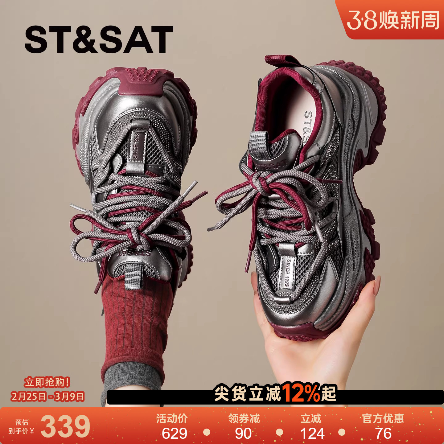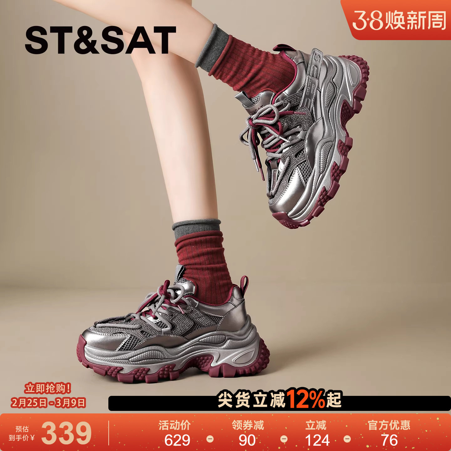 📚 星期六银色厚底老爹鞋女款新款春季女鞋增高鞋子女休闲运动鞋