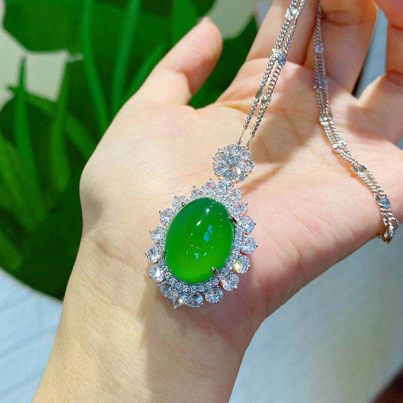 📚 天然冰透冰种玛瑙玉髓鸽子蛋满钻项链女气质时尚轻奢高级感锁骨链