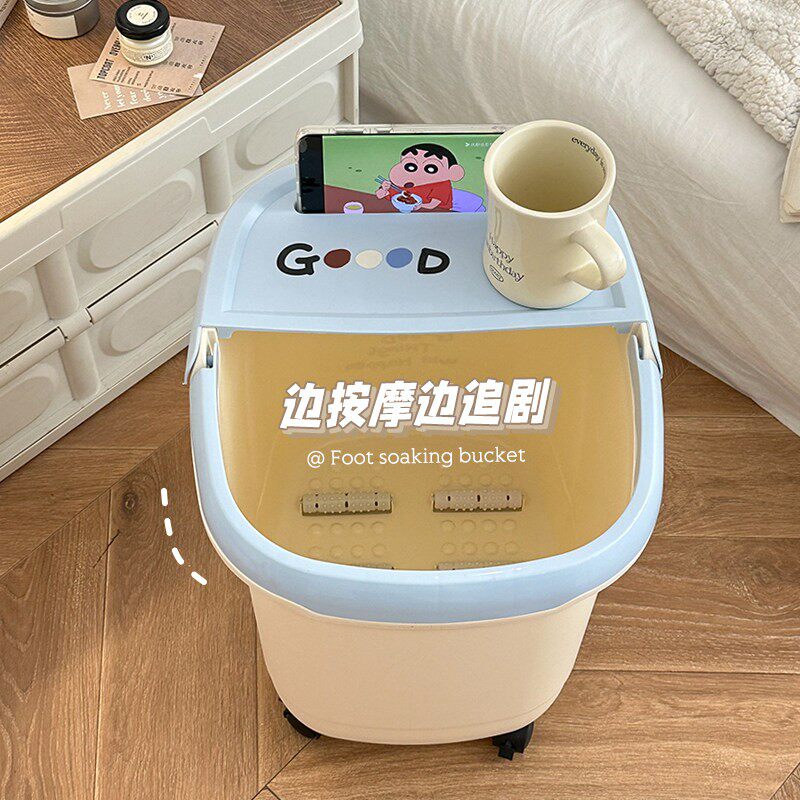 📚 可爱泡脚桶家用过小腿儿童养生按摩加高过膝足浴盆保温洗脚盆带轮