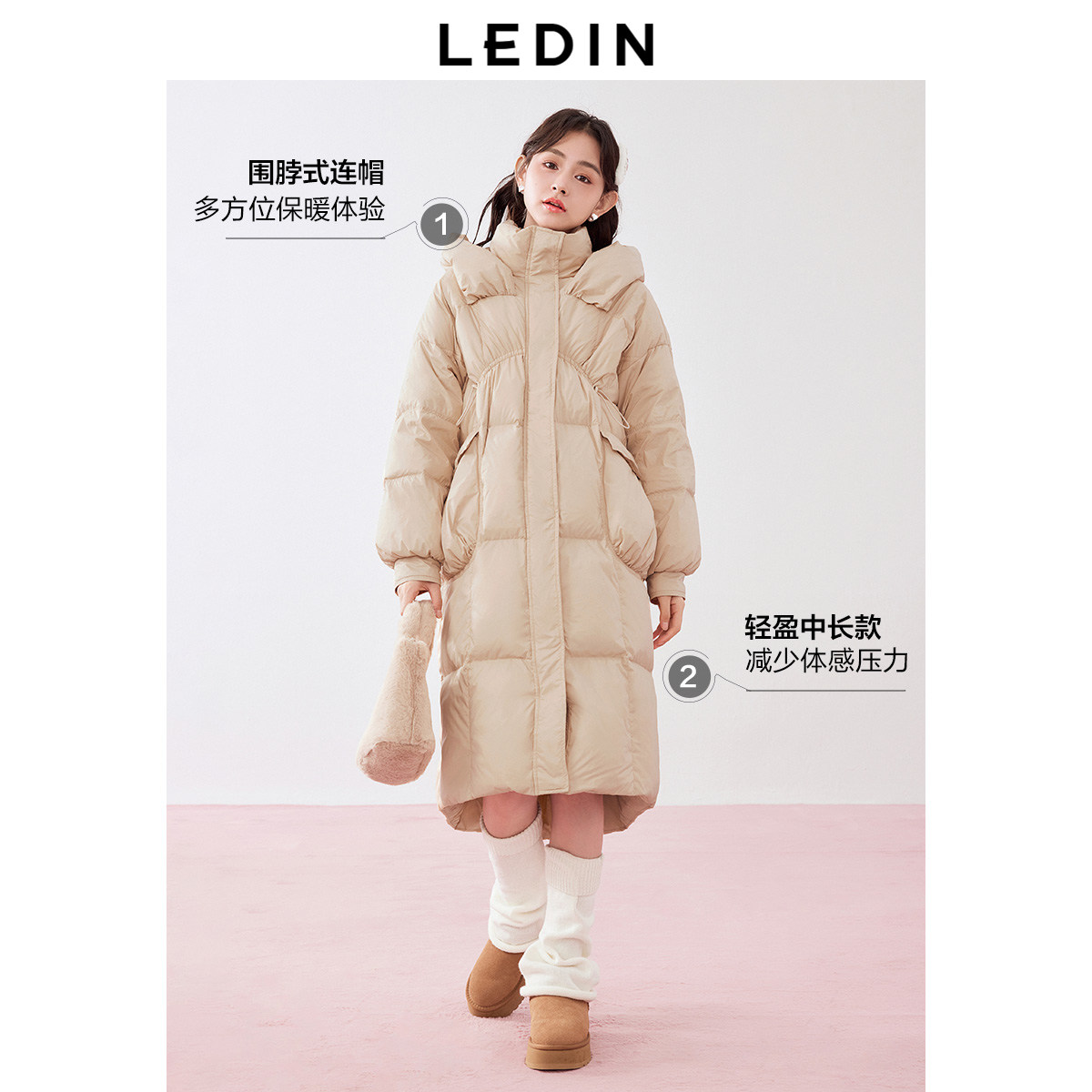 📚 乐町中长款连帽面包羽绒服冬季新款女装韩系软萌加厚保暖外套