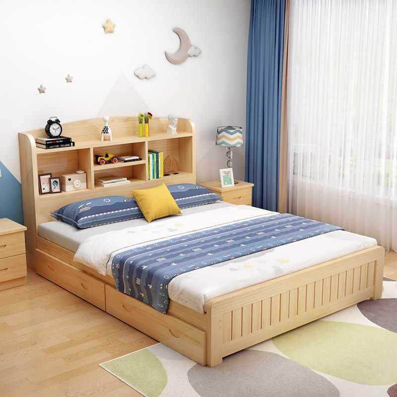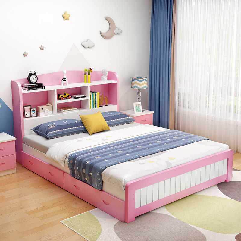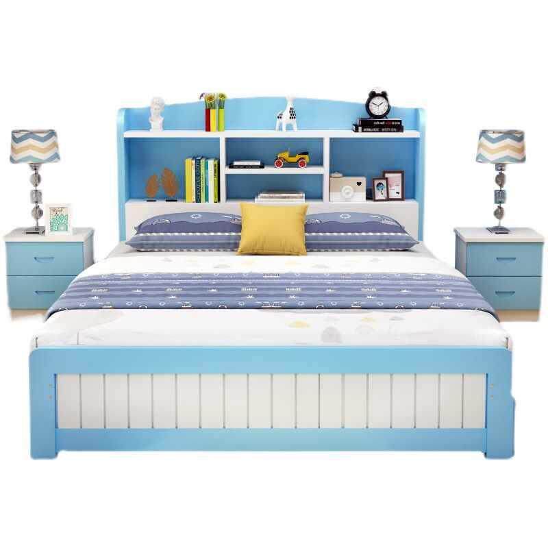 📚 实木儿简童床单床现代约男孩女孩学生床1.米人双人多功5能书A001