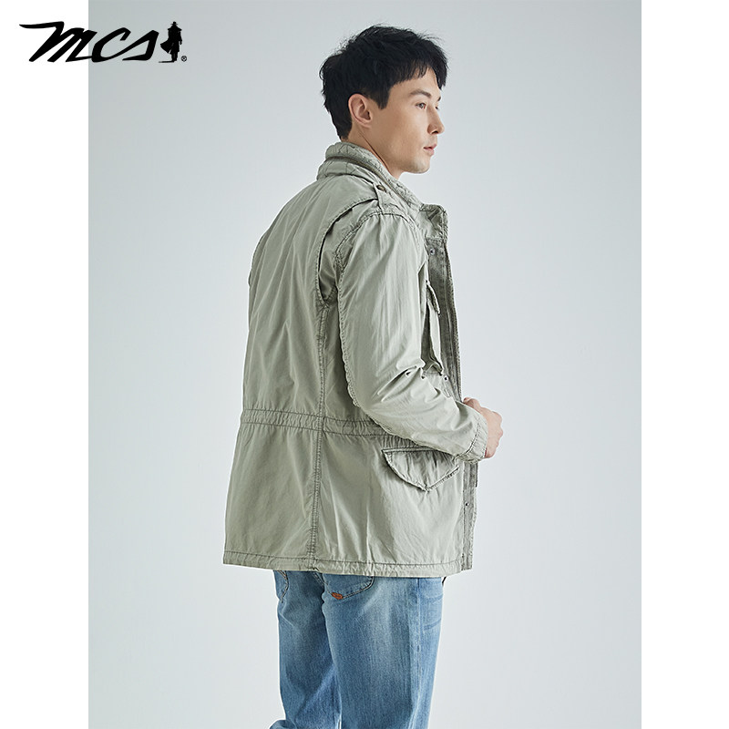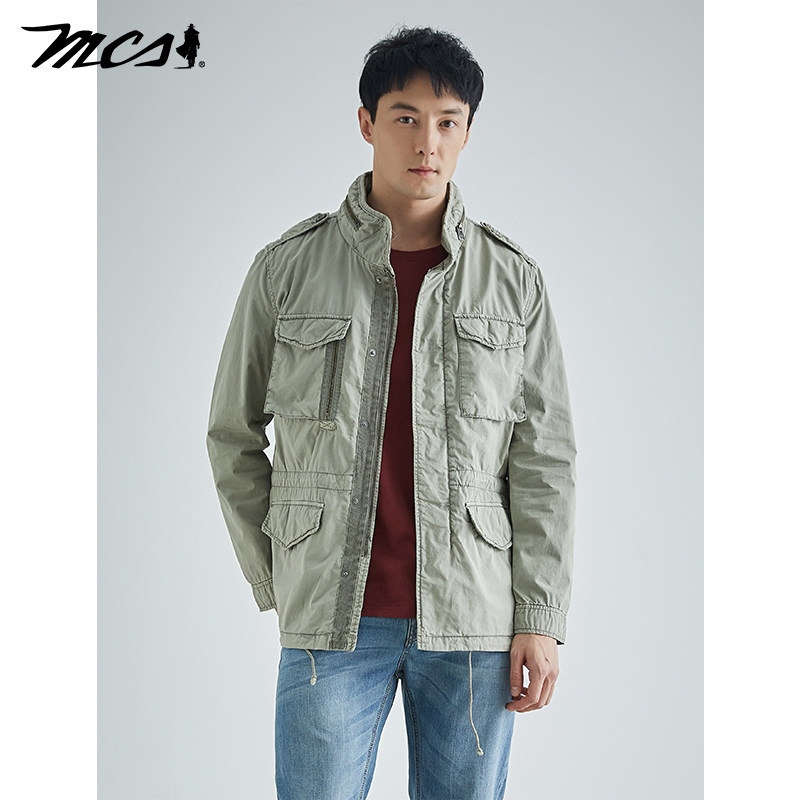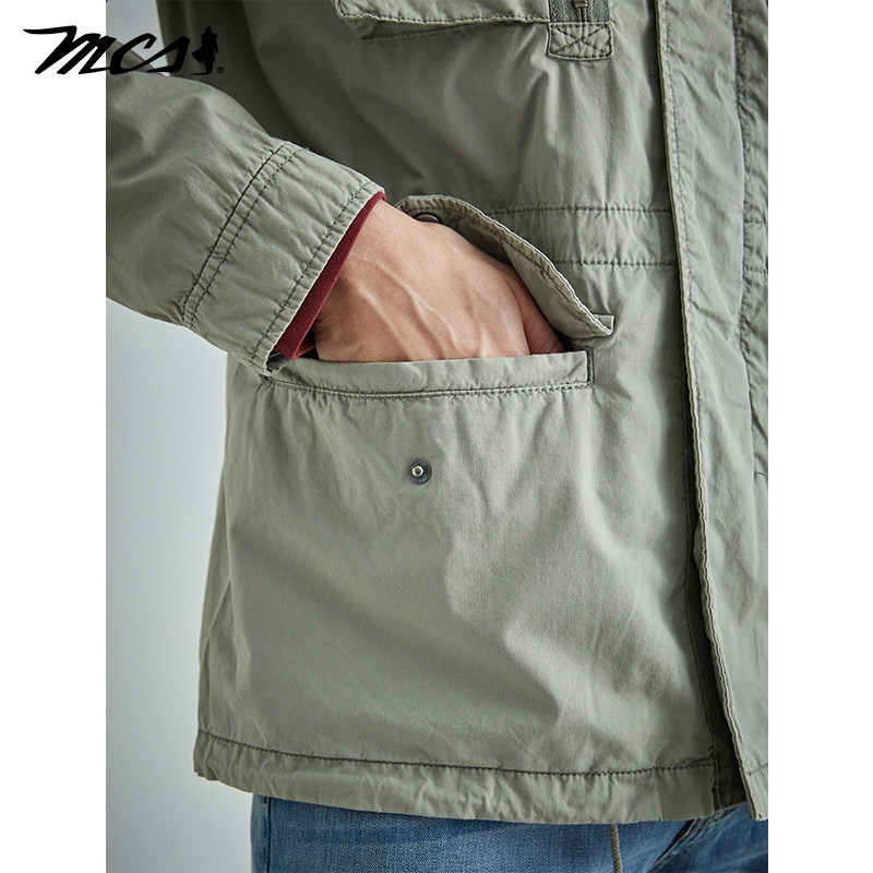 📚 MCS源自万宝路修身立领夹克春季新款复古做旧百搭多袋工装外套男