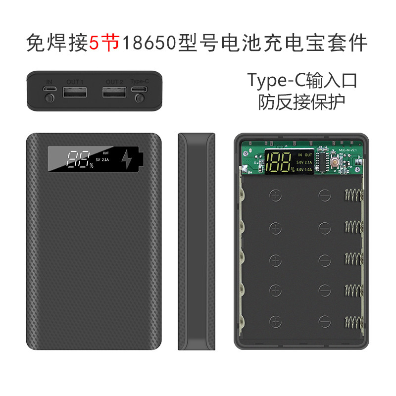 📚 拆卸款免焊接5节数显充电宝外壳18650锂电池盒子DIY组装套件壳料