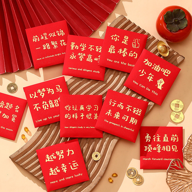 📚 新款创意个性学生励志语红包封儿童学生考试活动趣味祝福语利是封