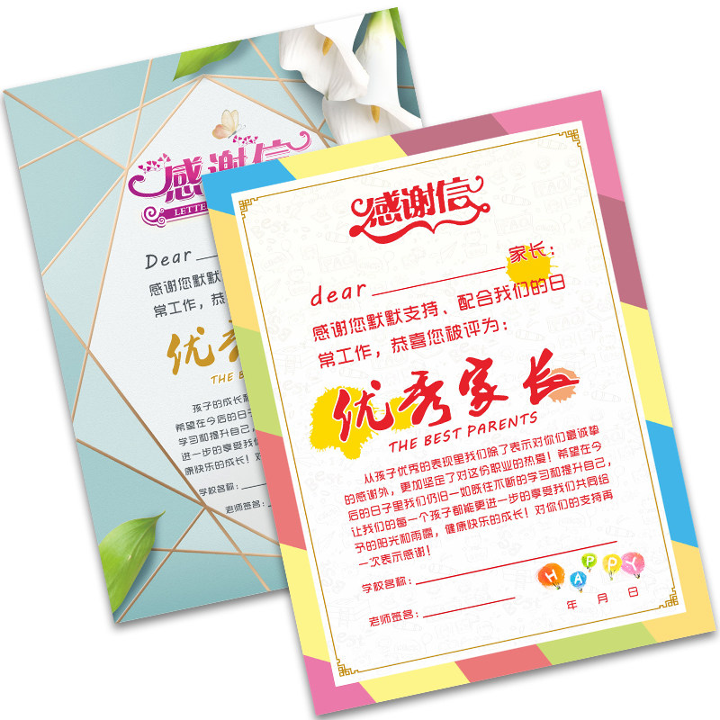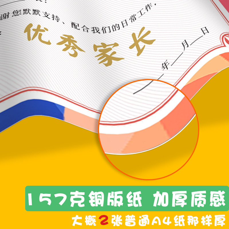 📚 A4铜版纸157克幼儿小学中学优秀家长感谢信奖状 创意可定制空白家长表扬信 荣誉证书优秀家委内芯 打印刷加厚