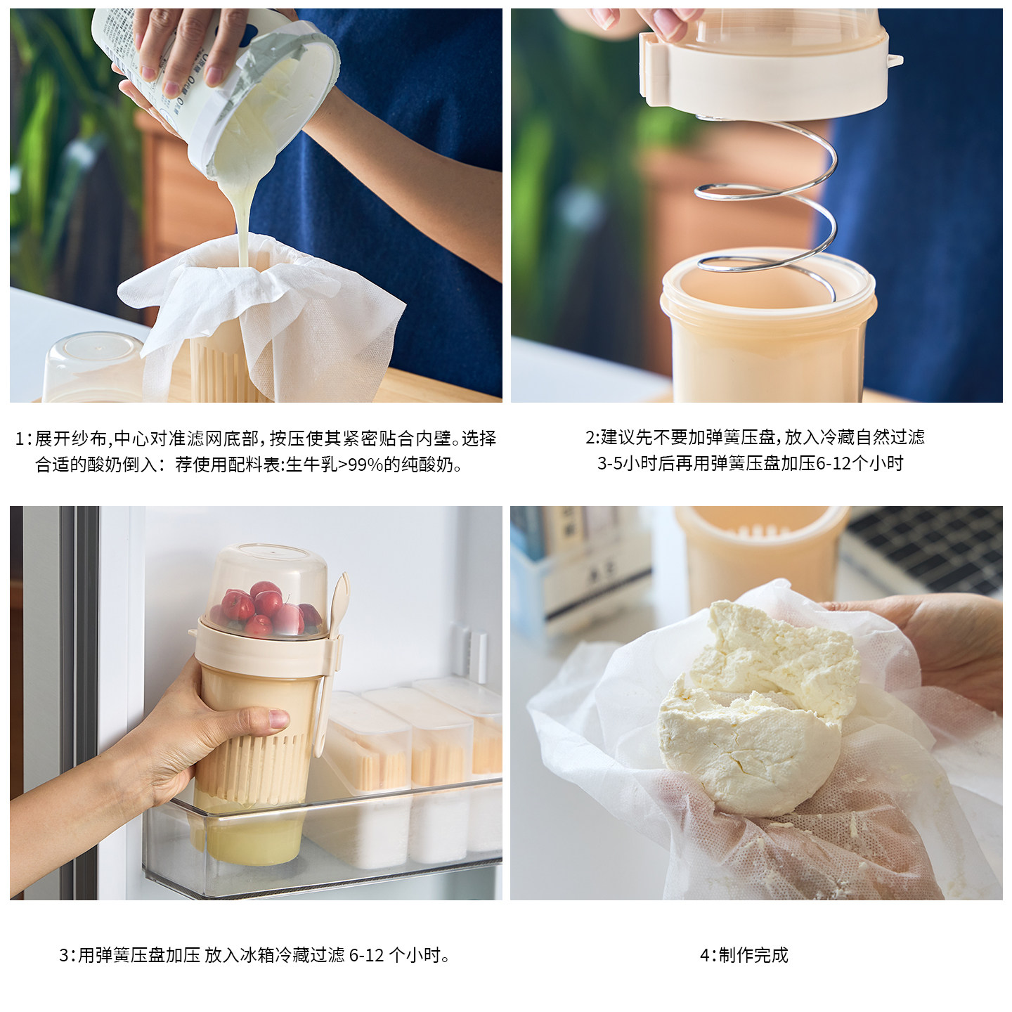 📚 便携式干噎希腊酸奶过滤器乳清分离干巴冷萃酸奶碗过滤机过滤纱布