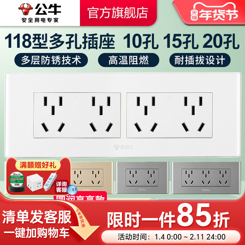 📚 公牛插座旗舰118型开关插座五孔面板墙壁六孔9九孔12孔十二孔多孔