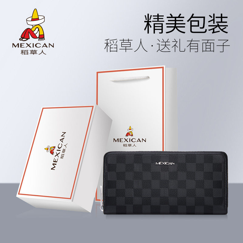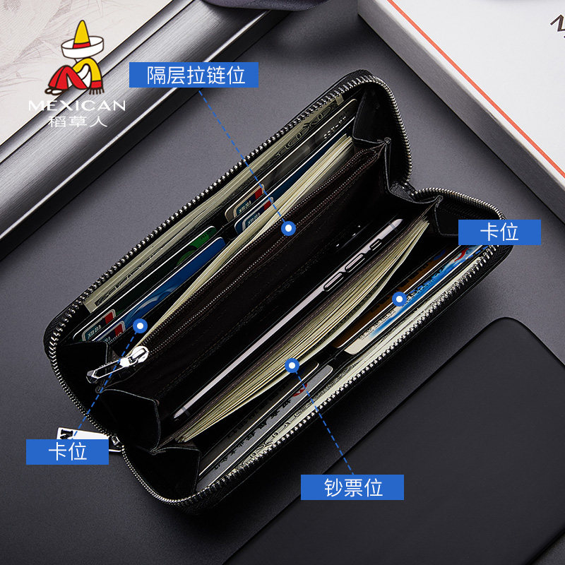 📚 稻草人新款钱包男士长款手拿真皮拉链零钱卡包一体皮夹大容量轻奢
