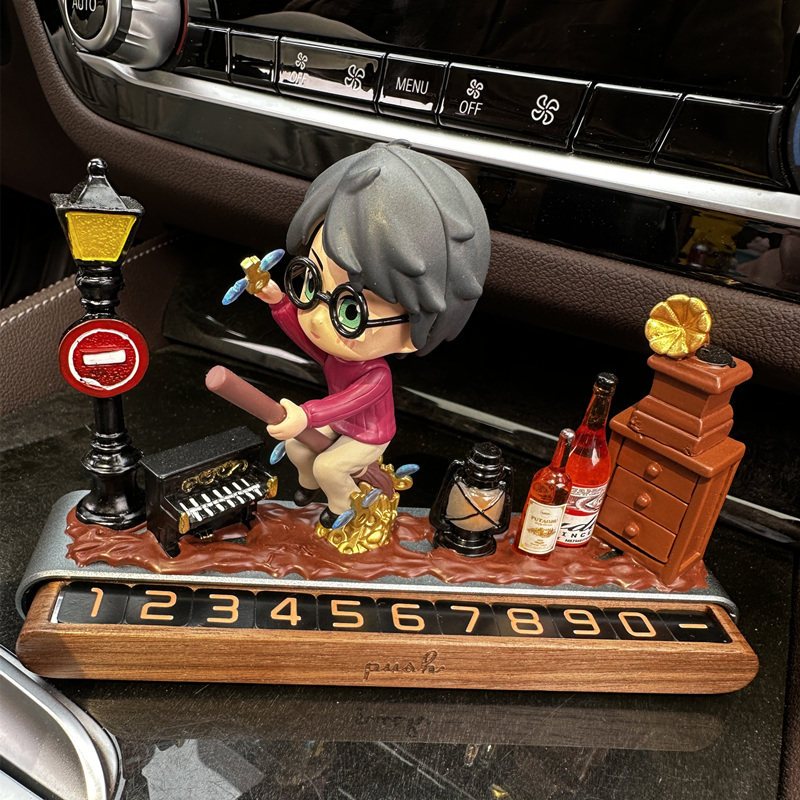 📚 泡泡玛特哈利波特临时停车挪车电话号码实木卡通车载摆件车内饰