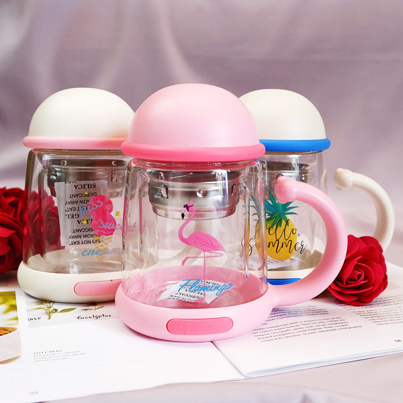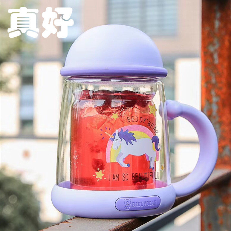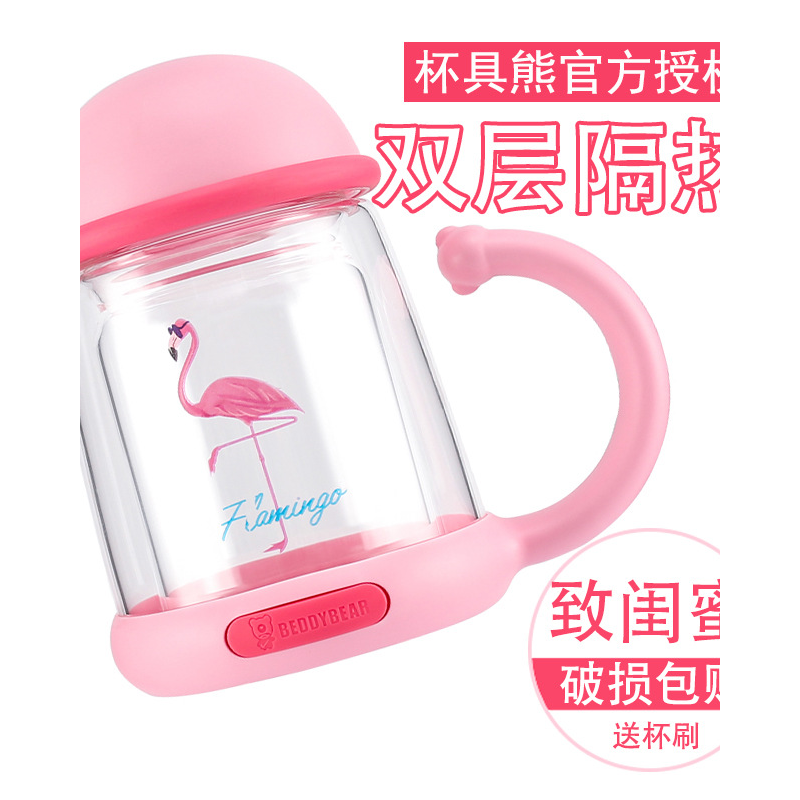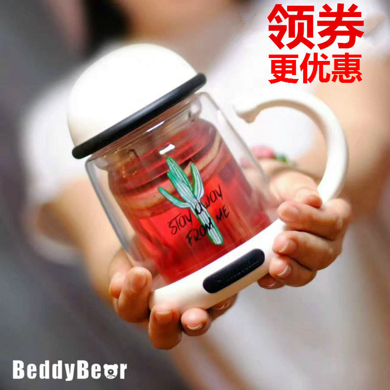 📚 韩国杯具熊双层玻璃杯水杯可爱隔热花茶杯办公室女士便携创意杯子