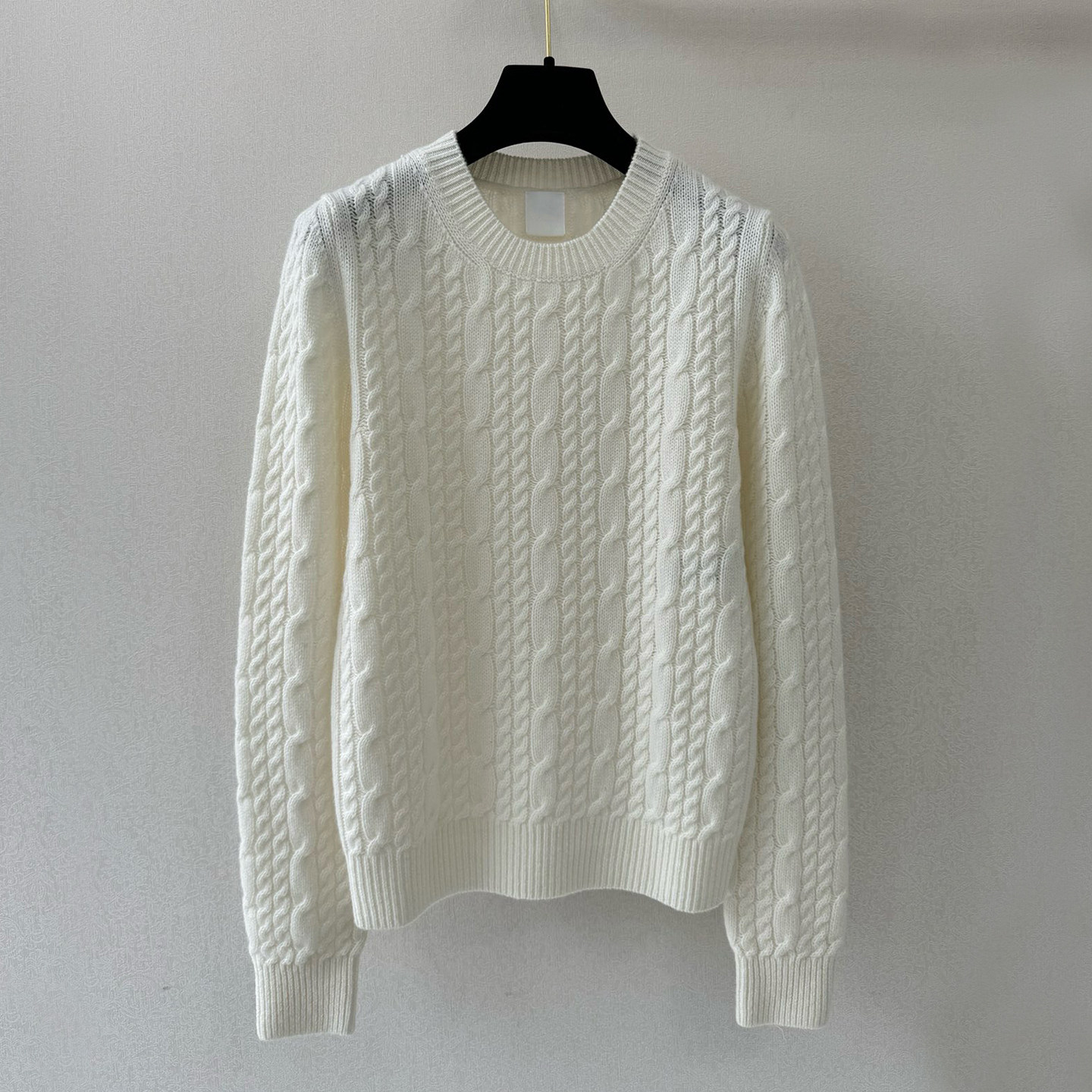 📚 经典白色羊绒衫 绞花毛衣女套头秋冬内搭圆领宽松显瘦麻花针织衫