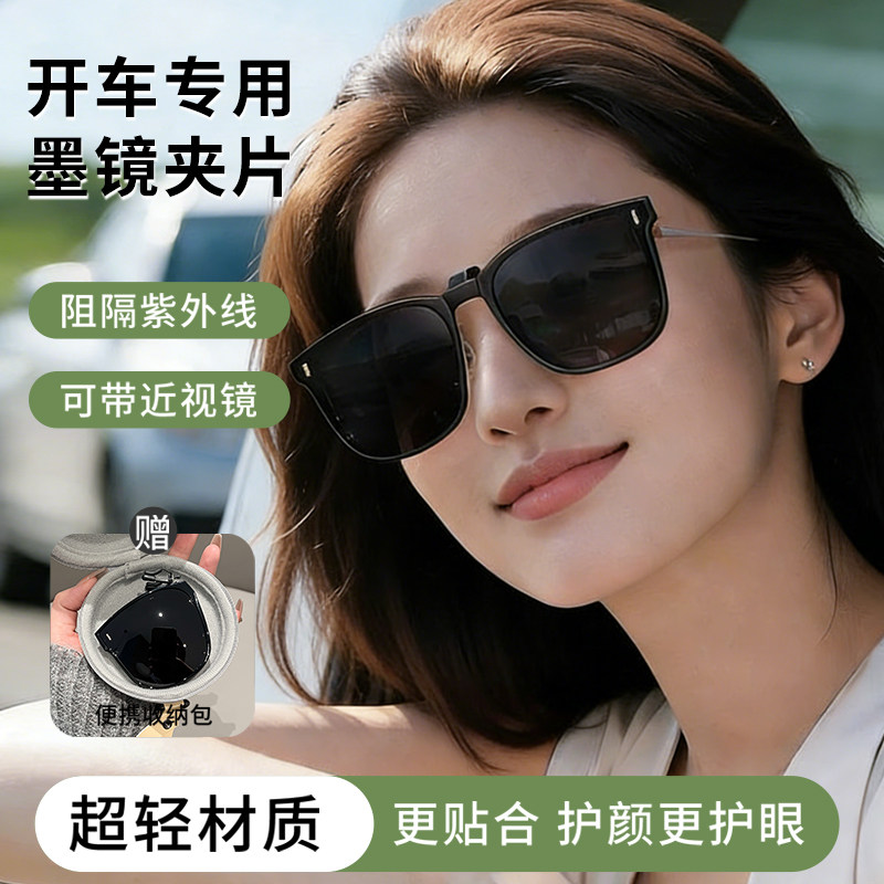 📚 可以戴在眼镜上的墨镜折叠款夹片可套近视镜女士超轻型偏光太阳镜