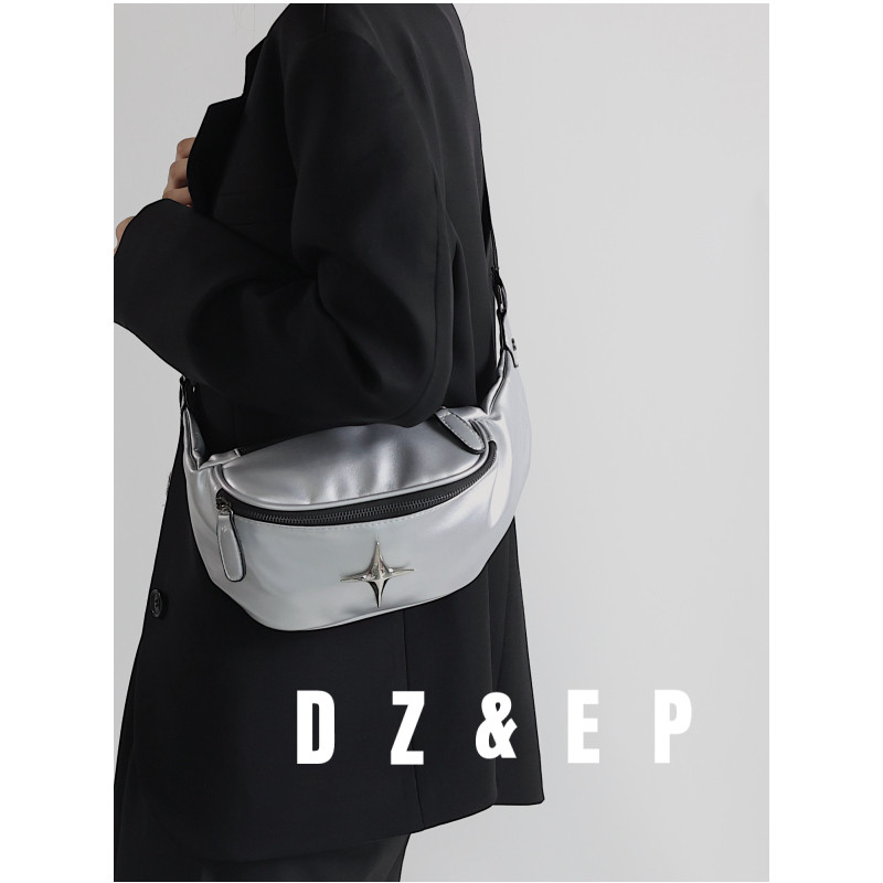 📚 大包包女2023新款夏季流行休闲百搭小众设计斜挎银色辣妹胸包腰包